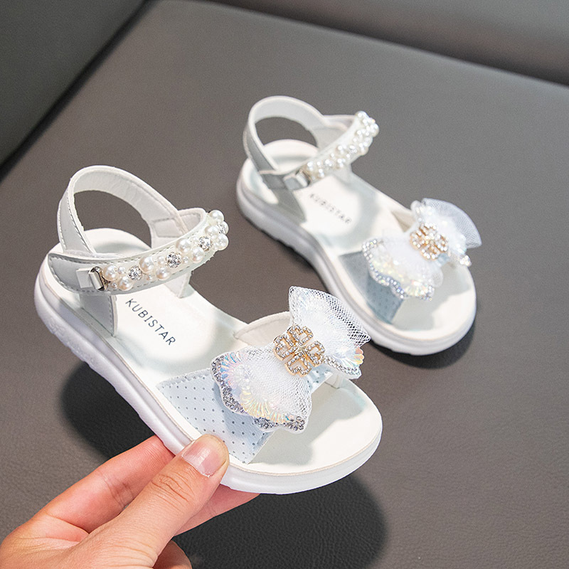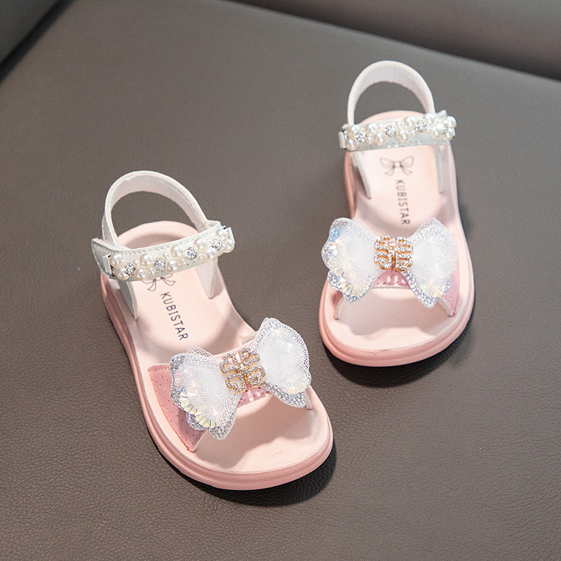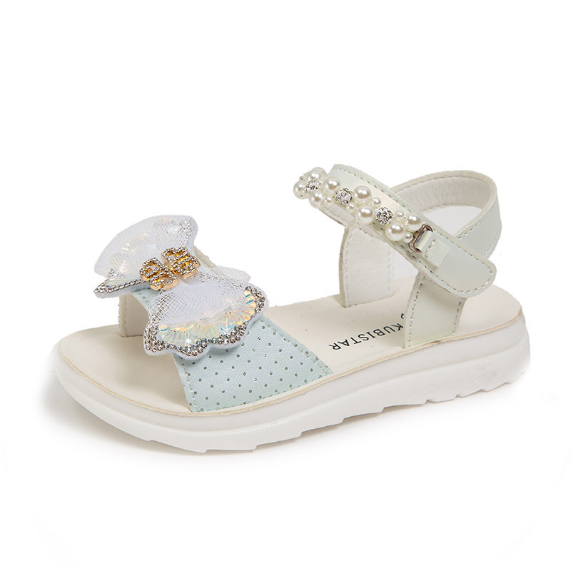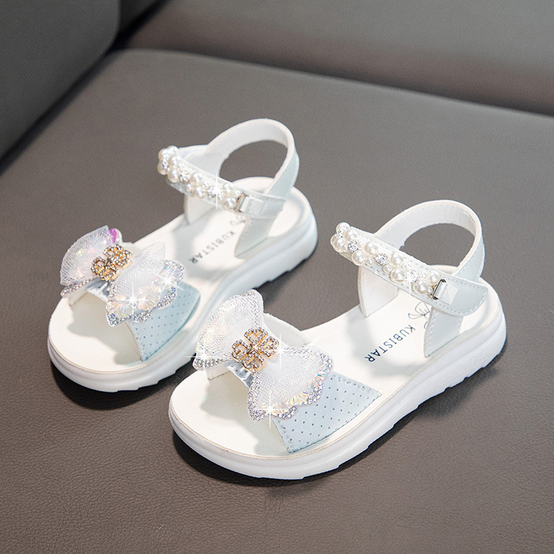 潮流童鞋女童时尚舒适蝴蝶结凉鞋钻石女童一字凉鞋露趾女童沙滩鞋