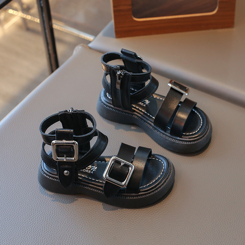 女童凉鞋夏款2025新款时尚百搭中大童儿童公主沙滩洋气编织罗马鞋