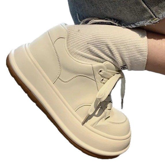 欧货大头小白鞋女款2025春季新款面包鞋休闲百搭厚底增高板鞋