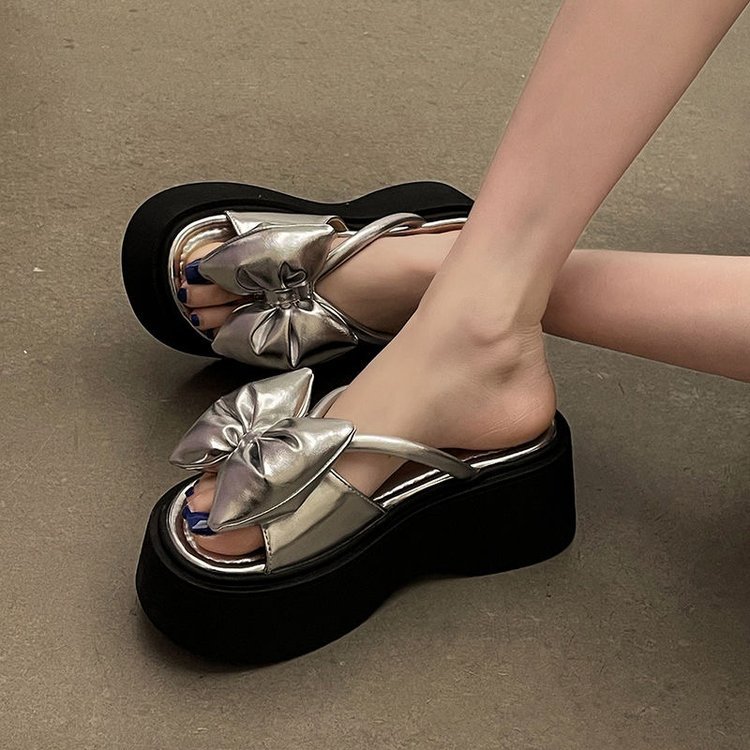 蝴蝶结厚底增高7CM拖鞋女夏季外穿时尚仙女风2025年新款一字凉拖