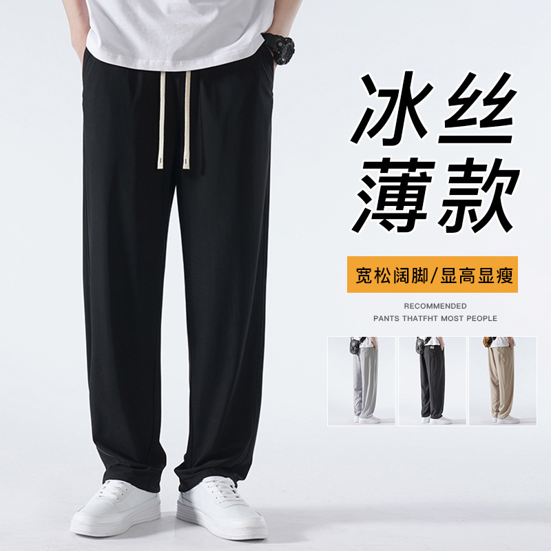 冰丝裤子男夏季薄款宽松阔腿休闲裤高级简约运动速干裤百搭时尚垂