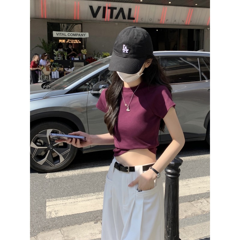 短款正肩短袖T恤女2025夏季修身显瘦休闲性感辣妹体恤学生上衣潮