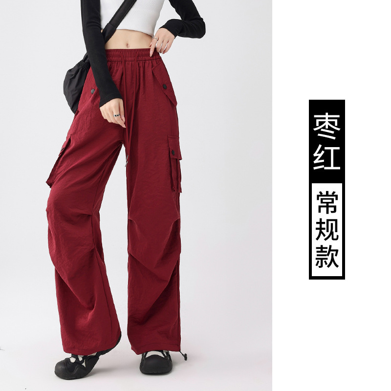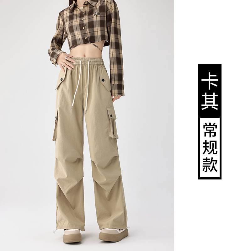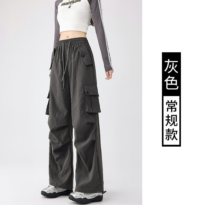 美式工装裤女夏季2025新款高腰速干降落伞裤子休闲阔腿运动长裤潮
