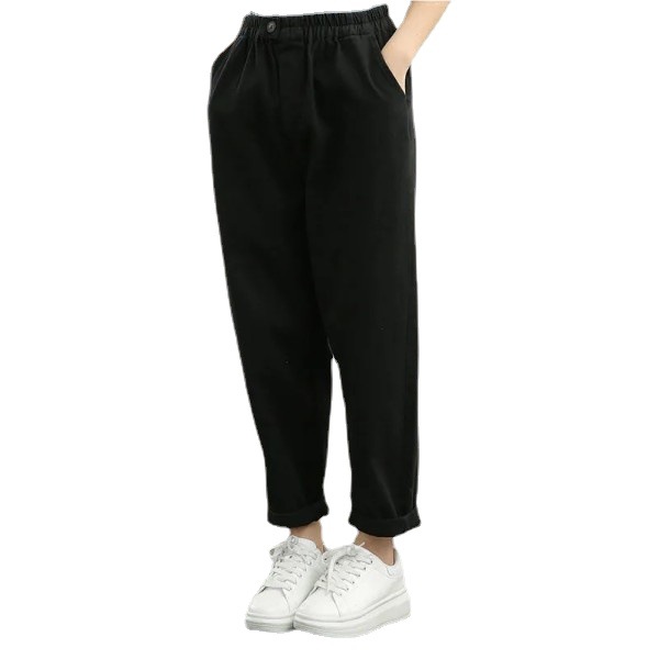 秋季新款复古学生休闲裤女纯色松紧腰显瘦哈伦裤九分裤子潮