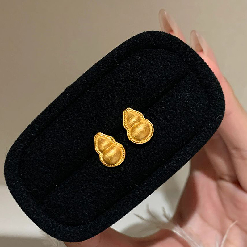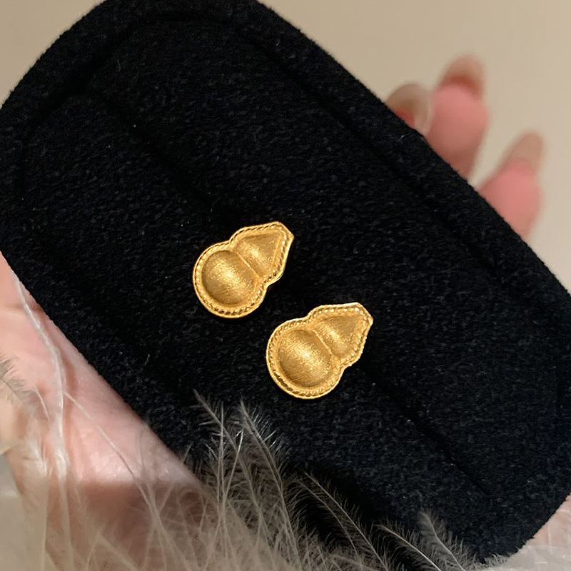 小红书爆款拉丝金葫芦耳钉2025新款中古重工国风福禄耳饰一件代发