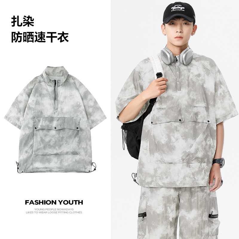 男生夏装冲锋衣新款嘻哈轻薄工装防晒酷休闲