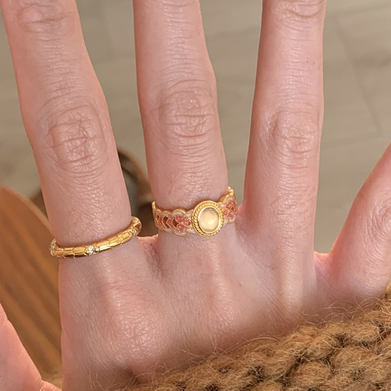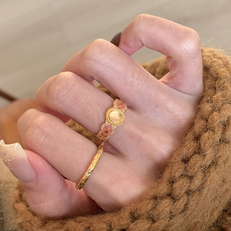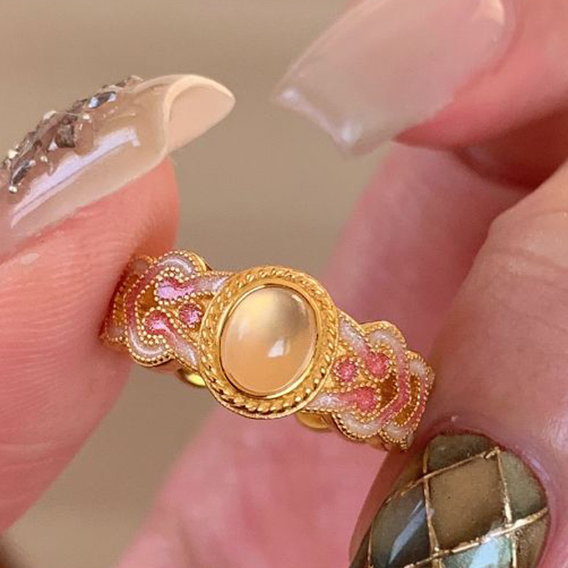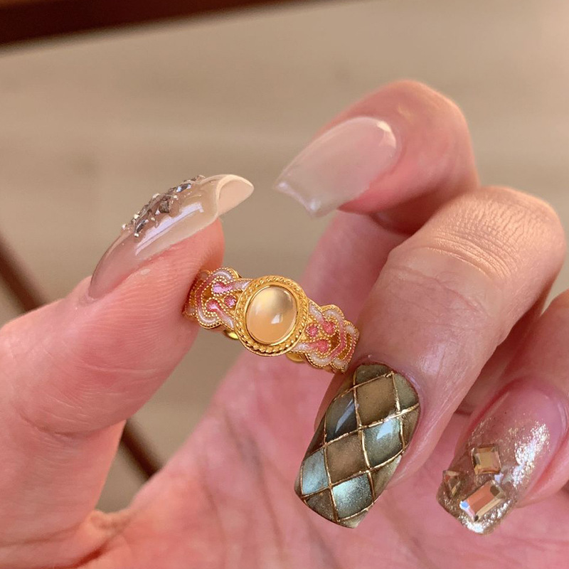 小红书爆款逃之夭夭粉晶珐琅戒指在逃公主气质鸽子蛋指环一件代发