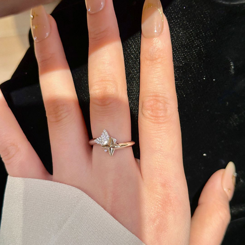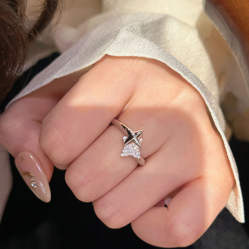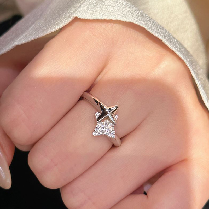 小红书爆款四芒星点钻戒指2025时尚新款银色个性冷淡风精致指环