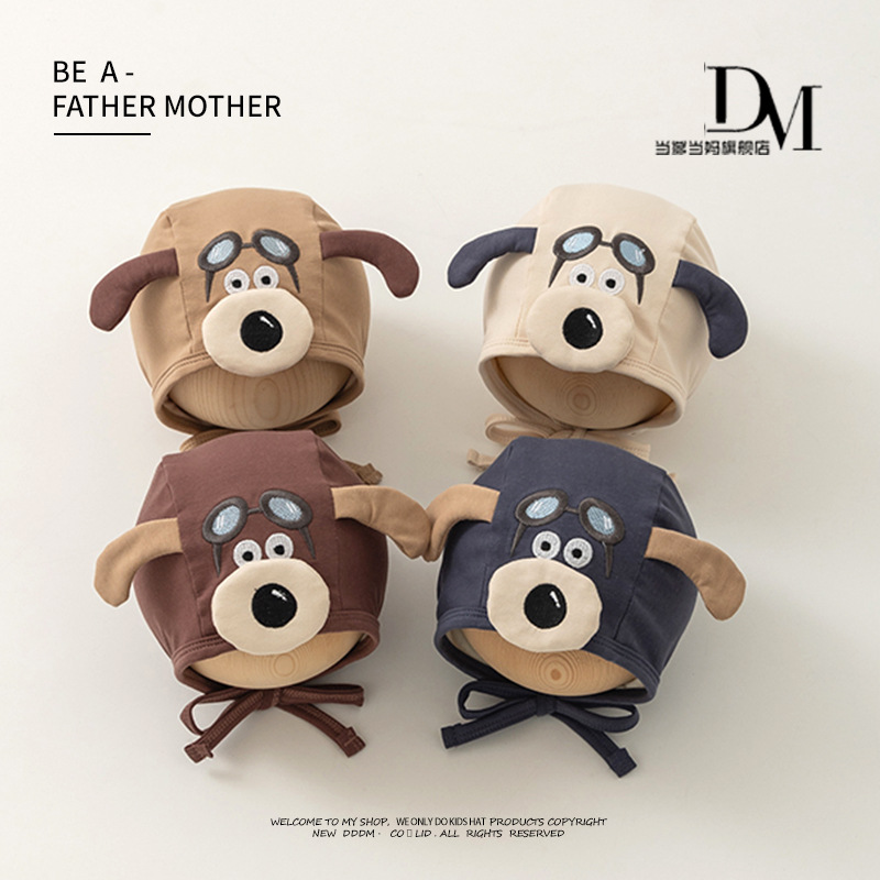 狗狗飞行员~婴儿帽子春秋款男女宝宝帽护耳帽新生幼儿包头帽超萌