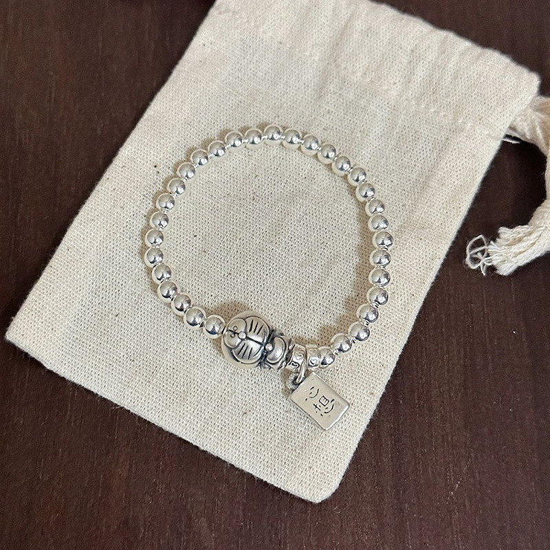 小红书爆款可爱哆啦A梦银珠手链女时尚轻奢银珠叮当猫百宝袋手串