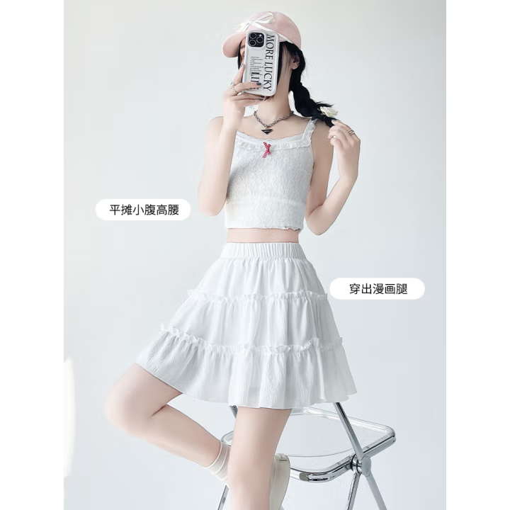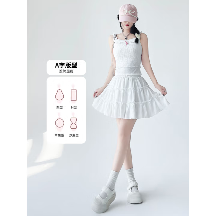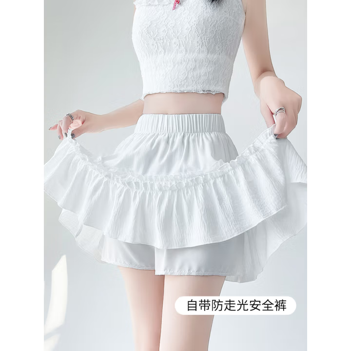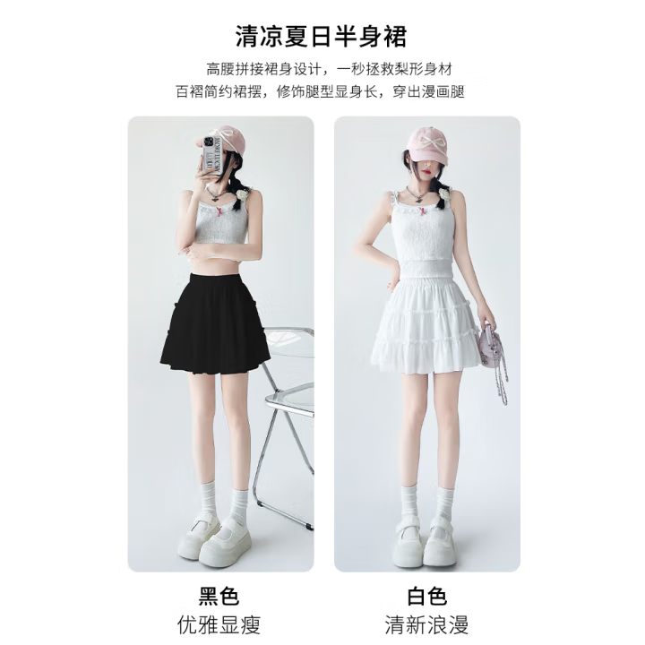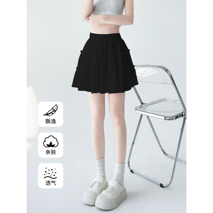 三层蛋糕短裙女2025新款木耳边拼接A字大摆蓬蓬防走光百搭半身裙