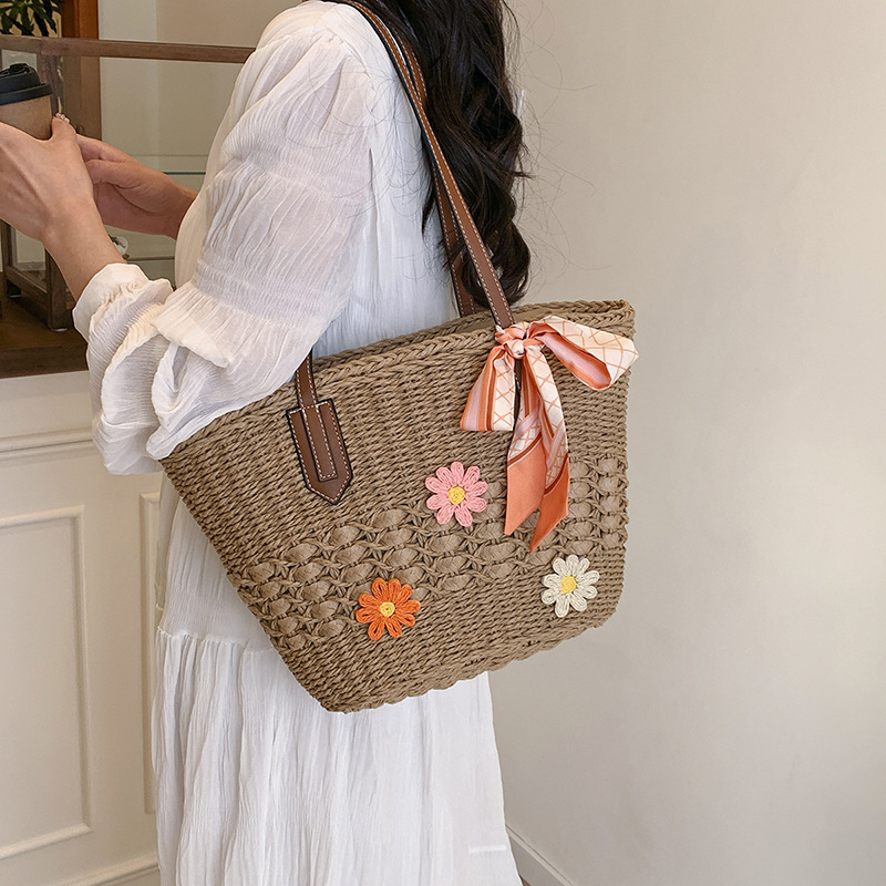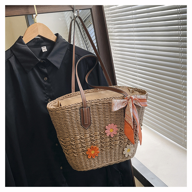 编织草编包女2025新款夏季海边旅游托特包休闲通勤手提单肩腋下包