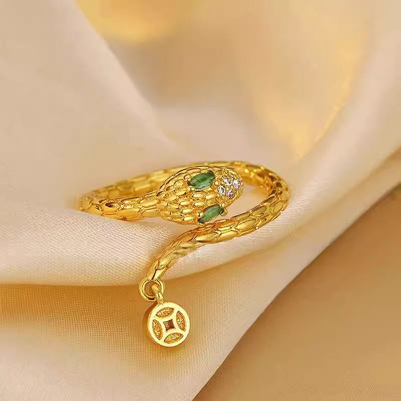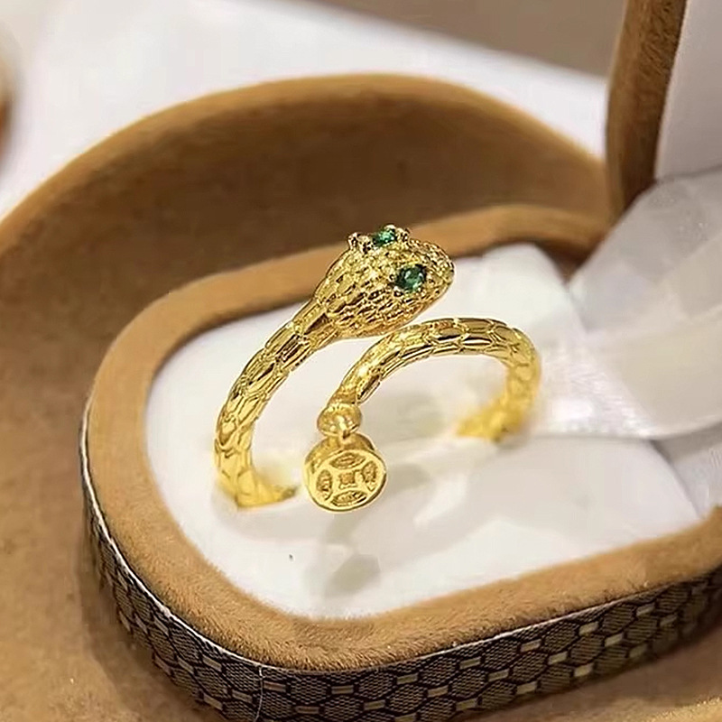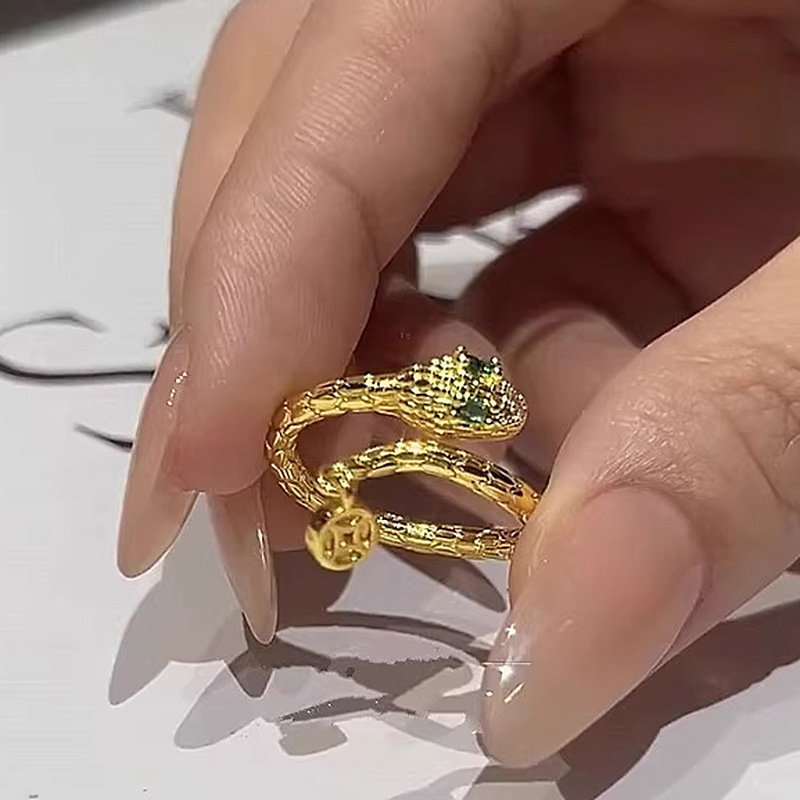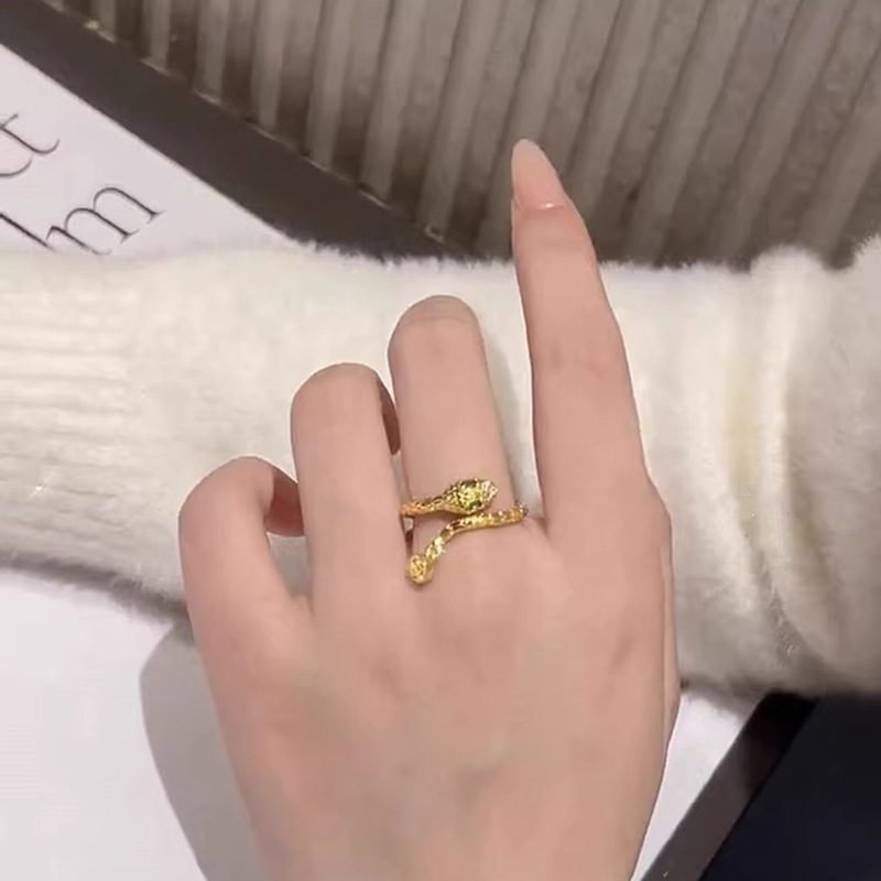 小红书爆款招财招财灵蛇戒指女2025本命年点钻小金蛇指环