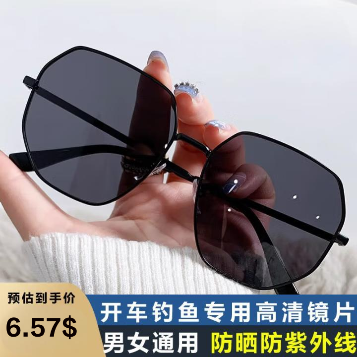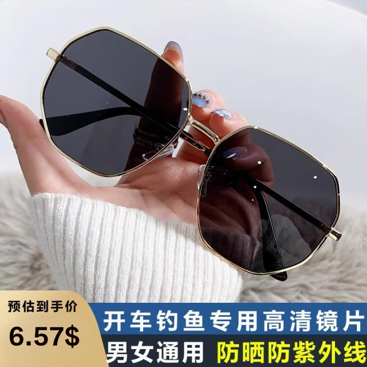 透明蓝色防紫外线太阳镜男士多边形金属开车墨镜潮海边眼镜女圆脸
