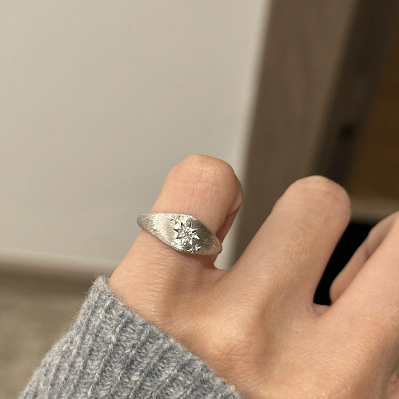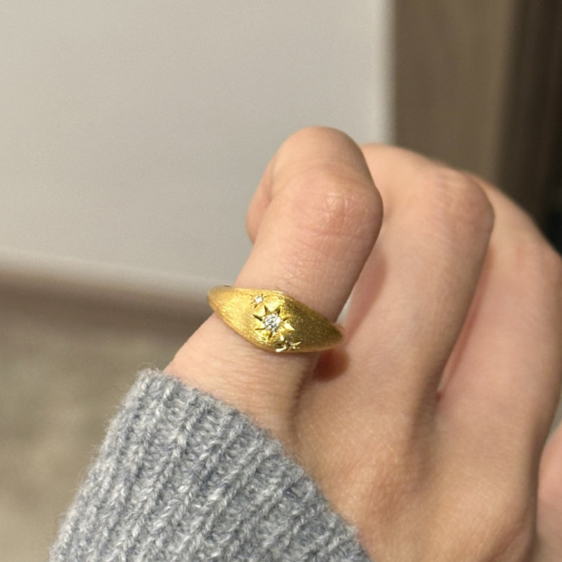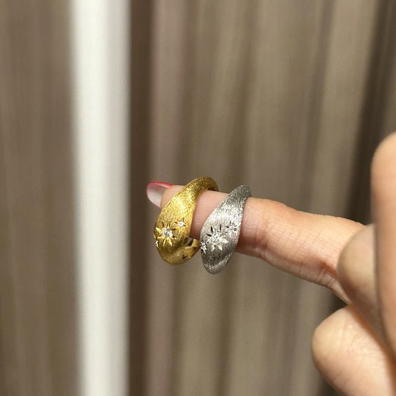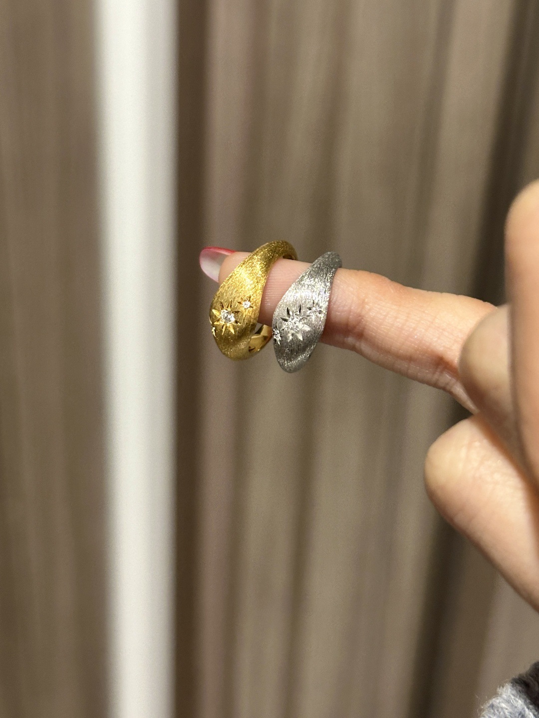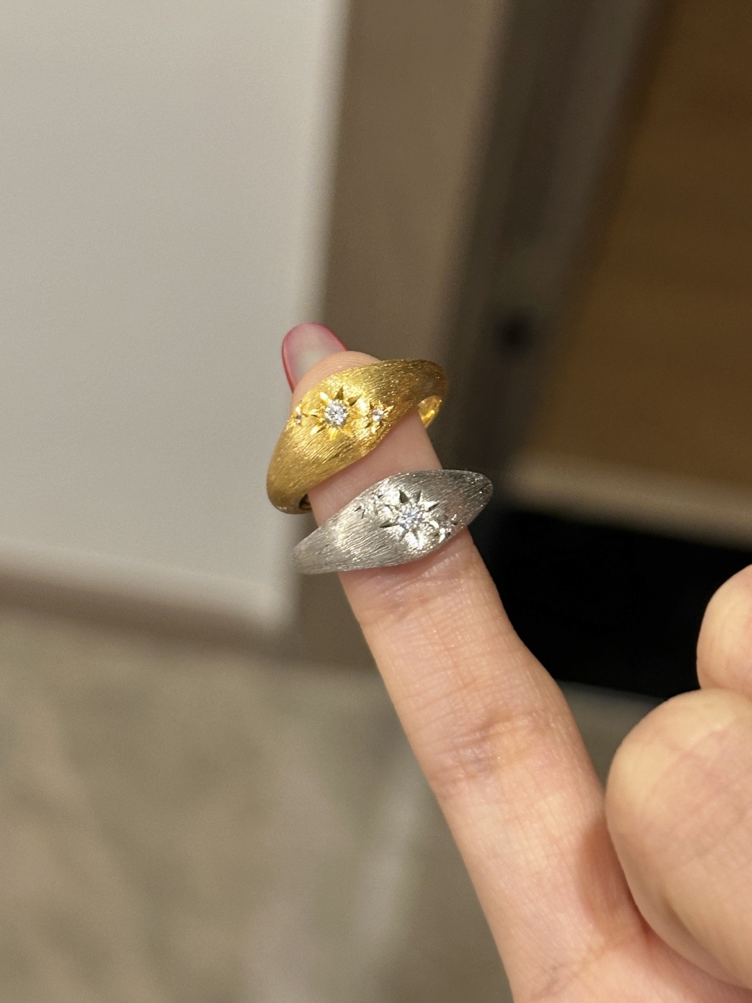 小红书爆款拉丝星芒尾戒女意大利古法布契雕花六芒星戒指