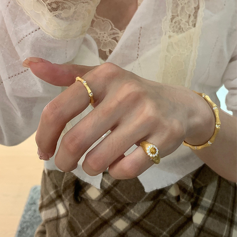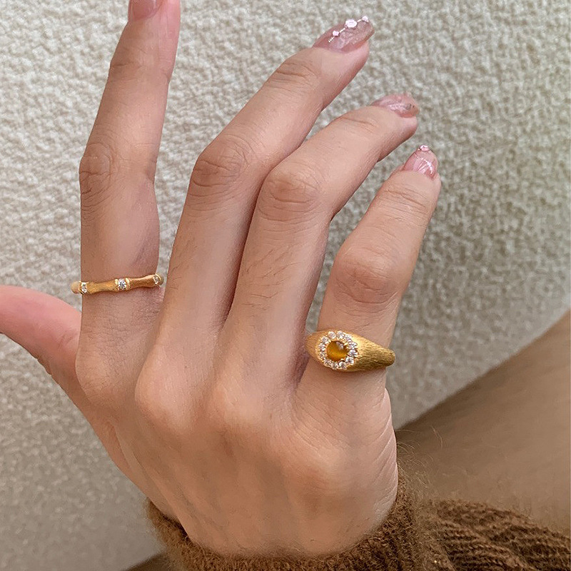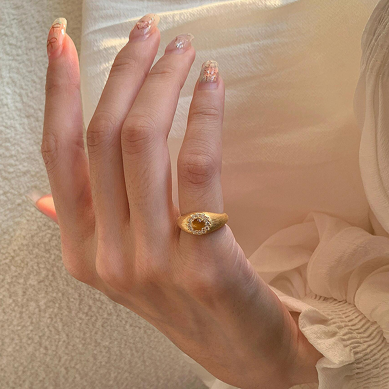 小红书同款虎眼石中古风拉丝工艺尾戒戒指女摩卡美拉德指环复古