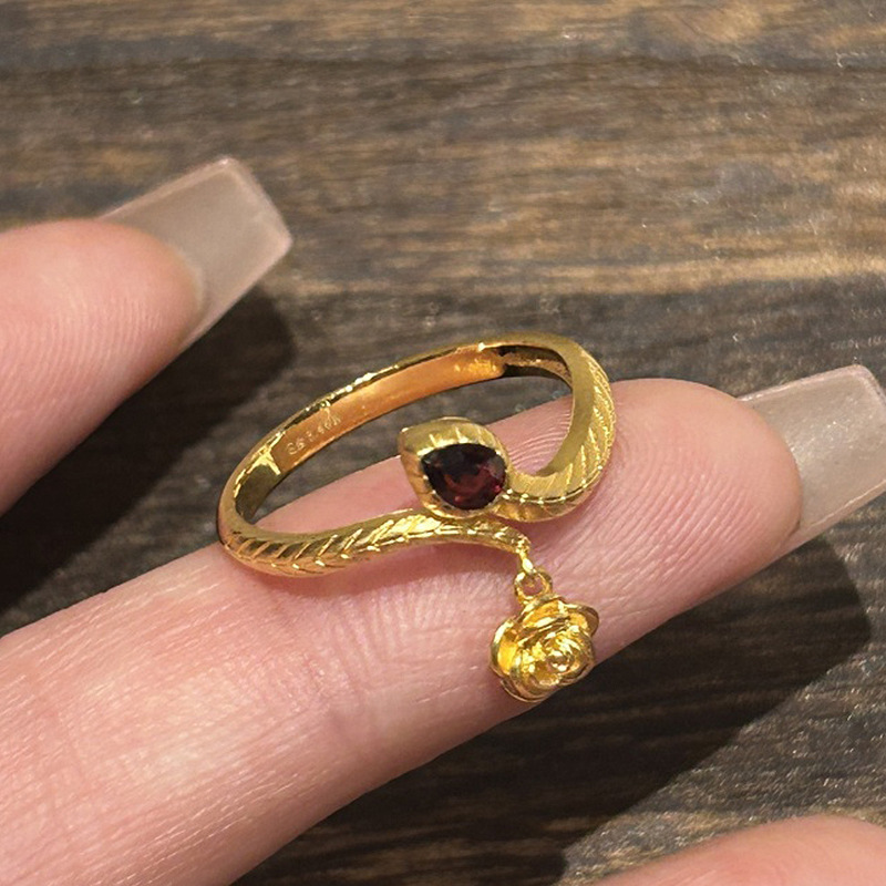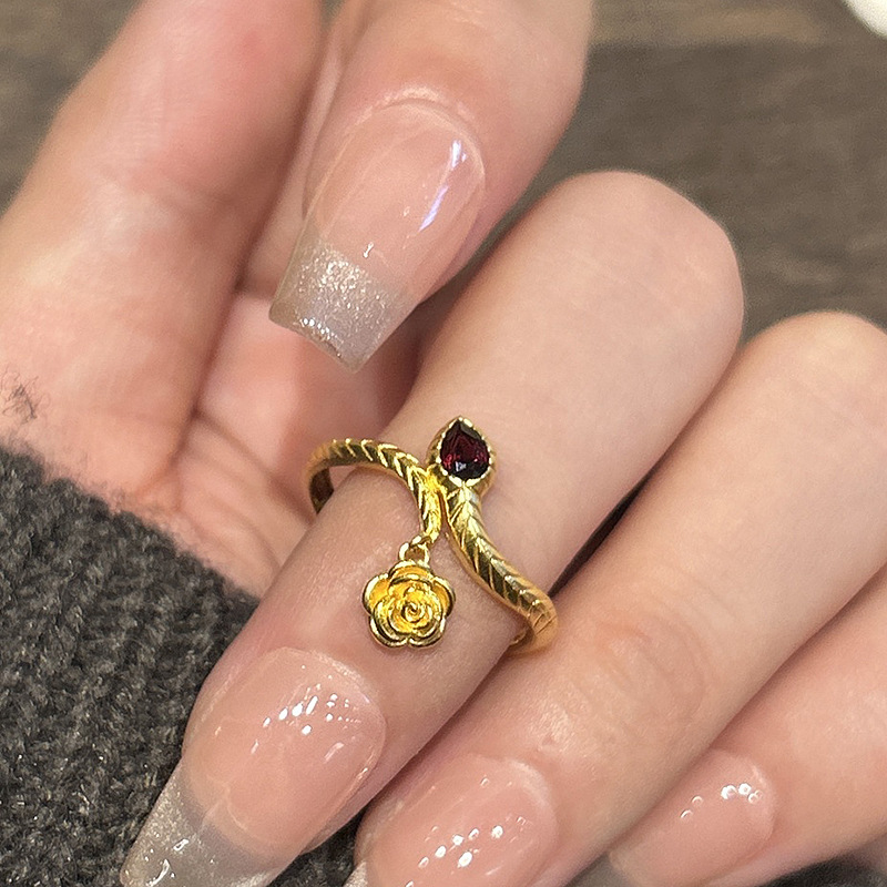 小红书爆款生肖蛇形本命年戒指古法重工玫瑰灵蛇流苏指环