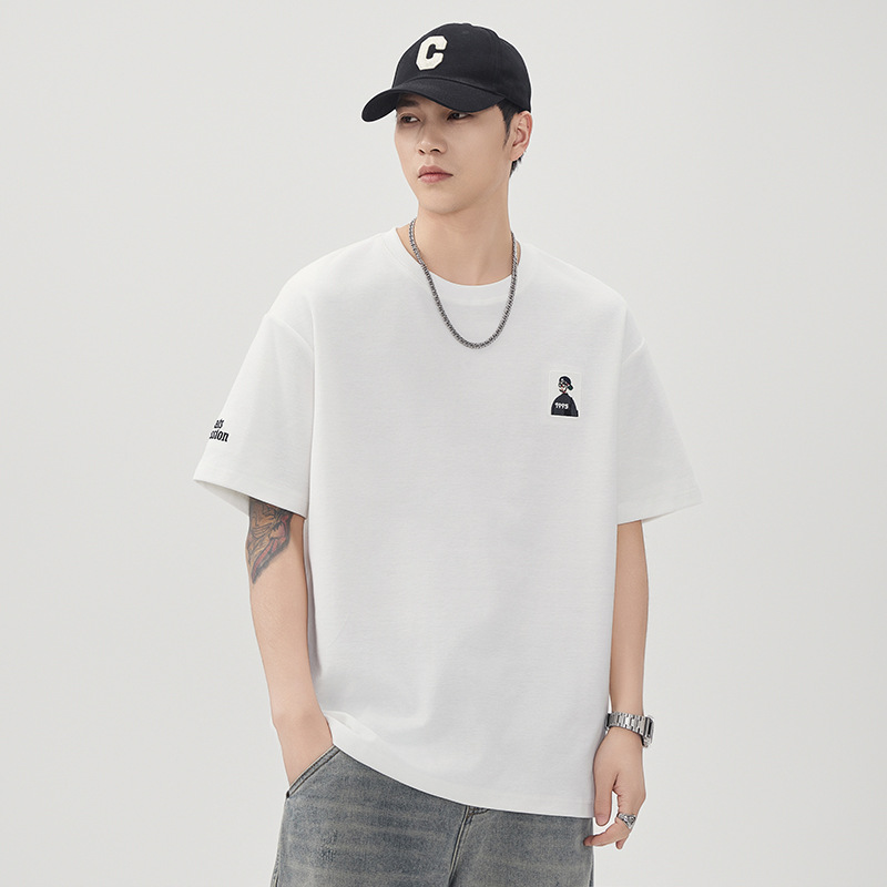 2025夏季新款美式潮牌250G重磅个性刺绣男士短袖体恤宽松圆领上衣