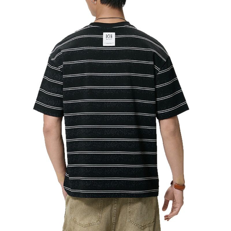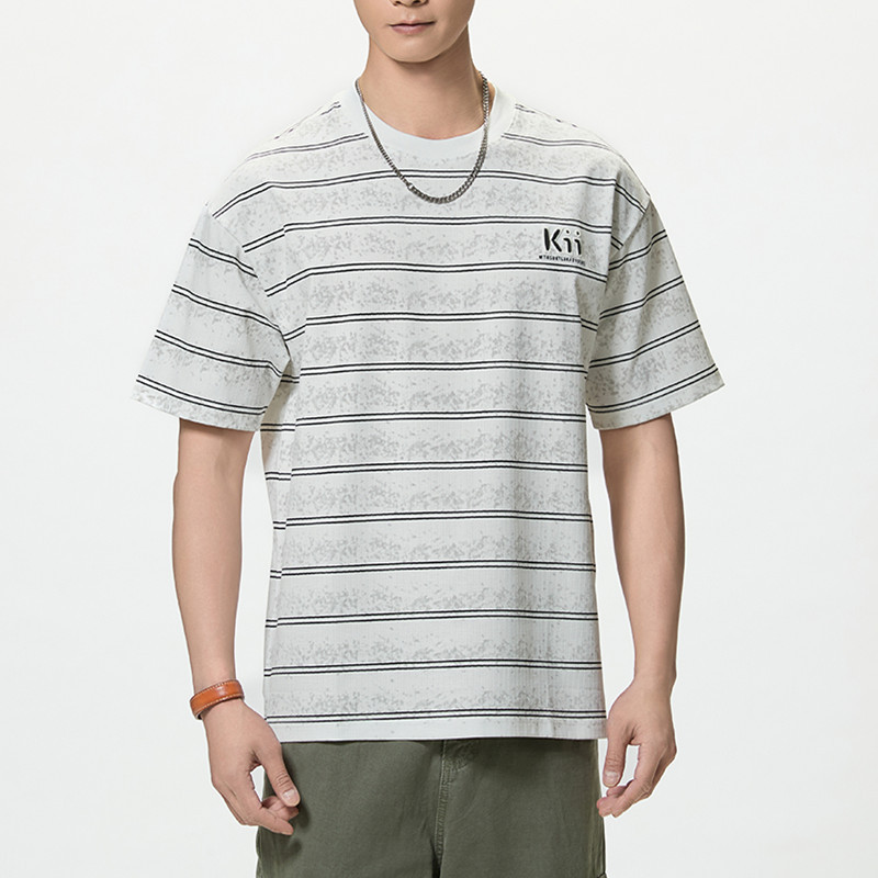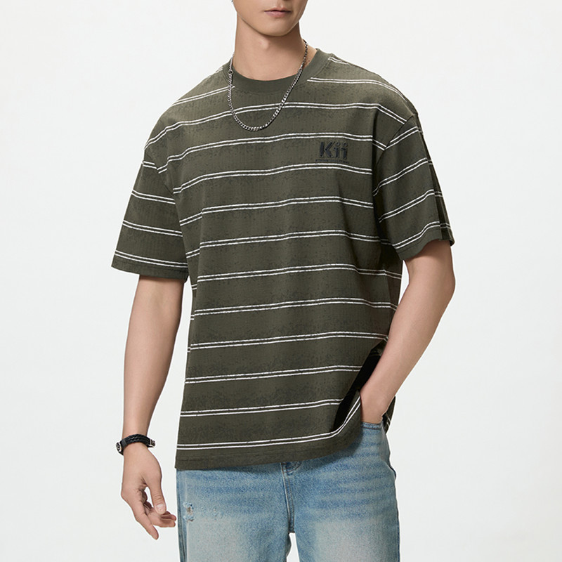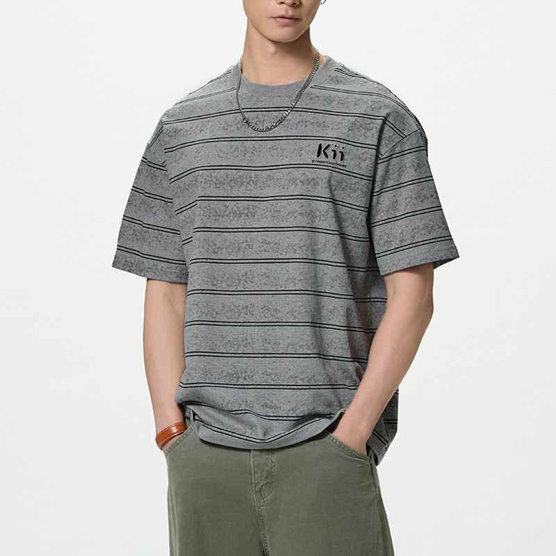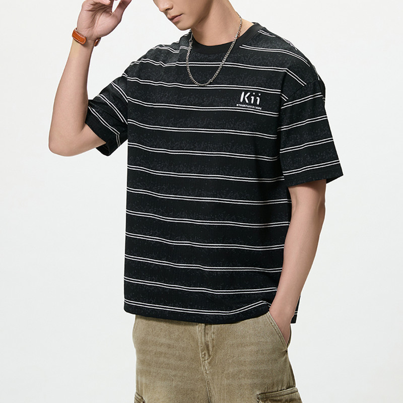 200g条纹短袖t恤男士2025夏季宽松凉感休闲运动半袖上衣T恤男