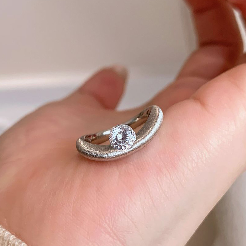 小红书爆款拉丝星环戒指女2025古法银色细闪银河镶钻指环