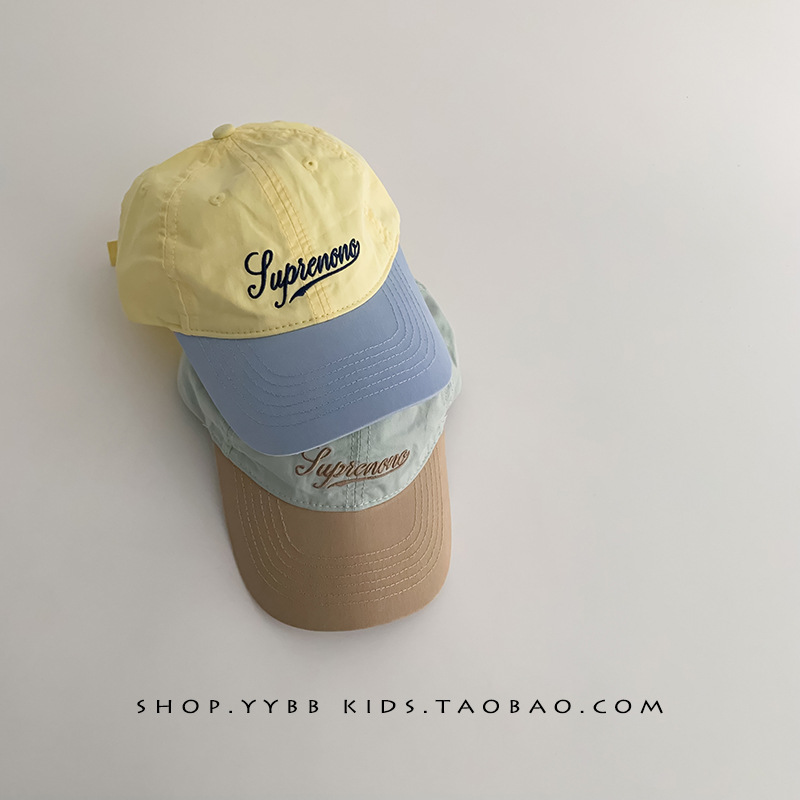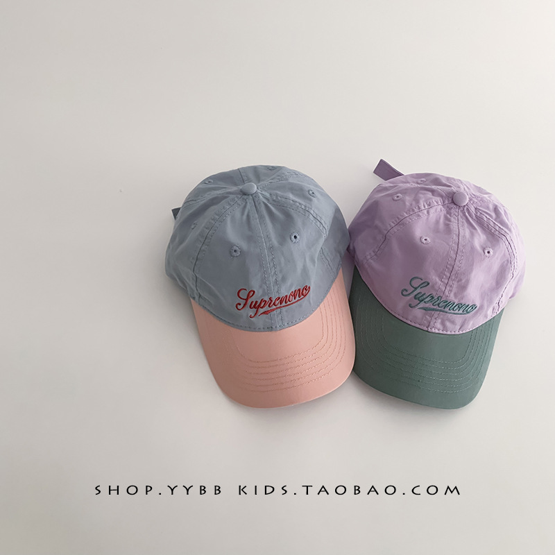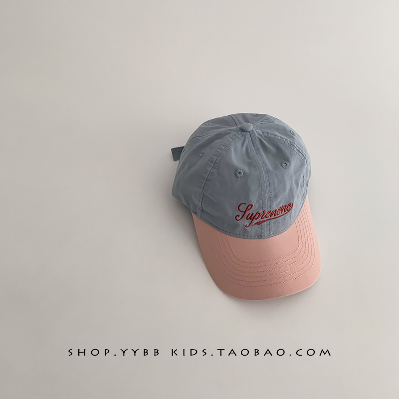 韩版拼色字母儿童帽子春秋薄款遮阳防晒鸭舌帽男女宝宝出游棒球帽