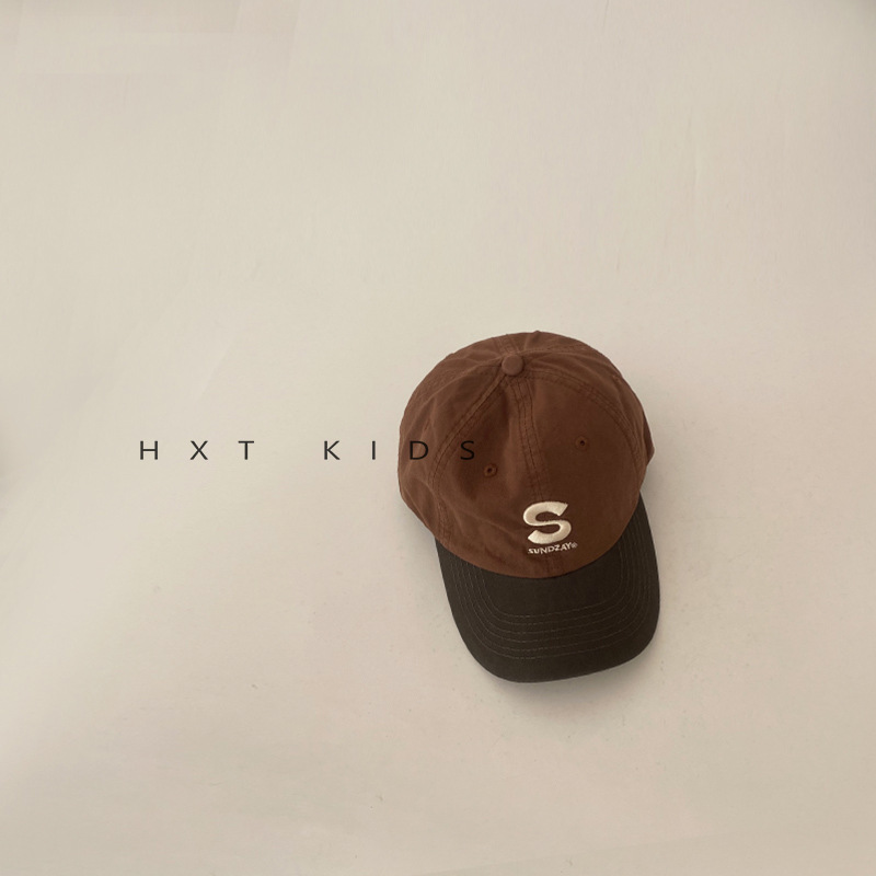 儿童鸭舌帽春秋季S字母刺绣拼色软顶棒球帽潮童宝宝ins韩国帽子潮