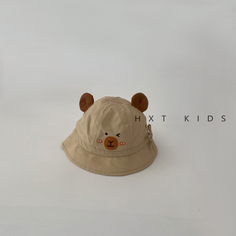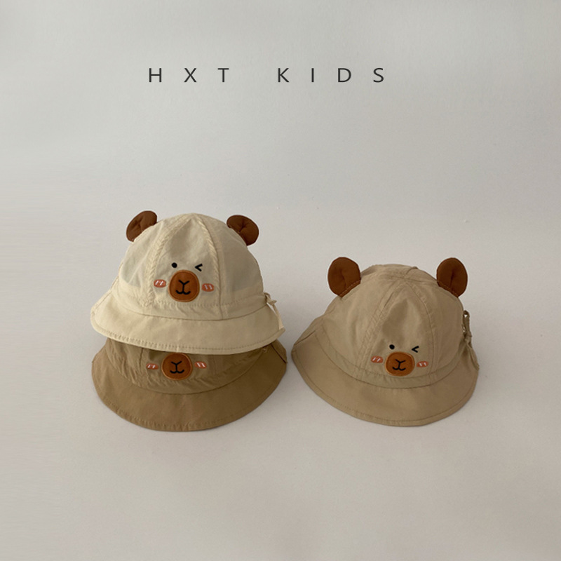 婴儿渔夫帽夏季薄款超萌可爱卡皮巴拉遮阳盆帽小月龄宝宝出游帽子