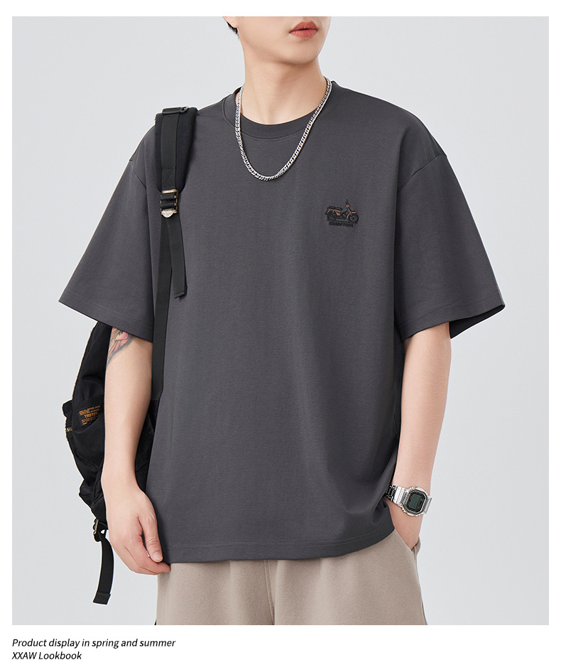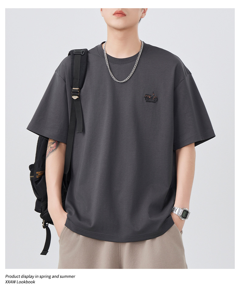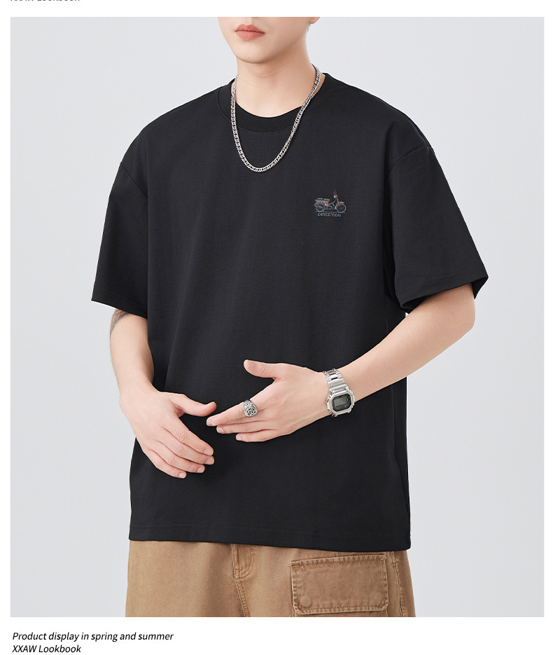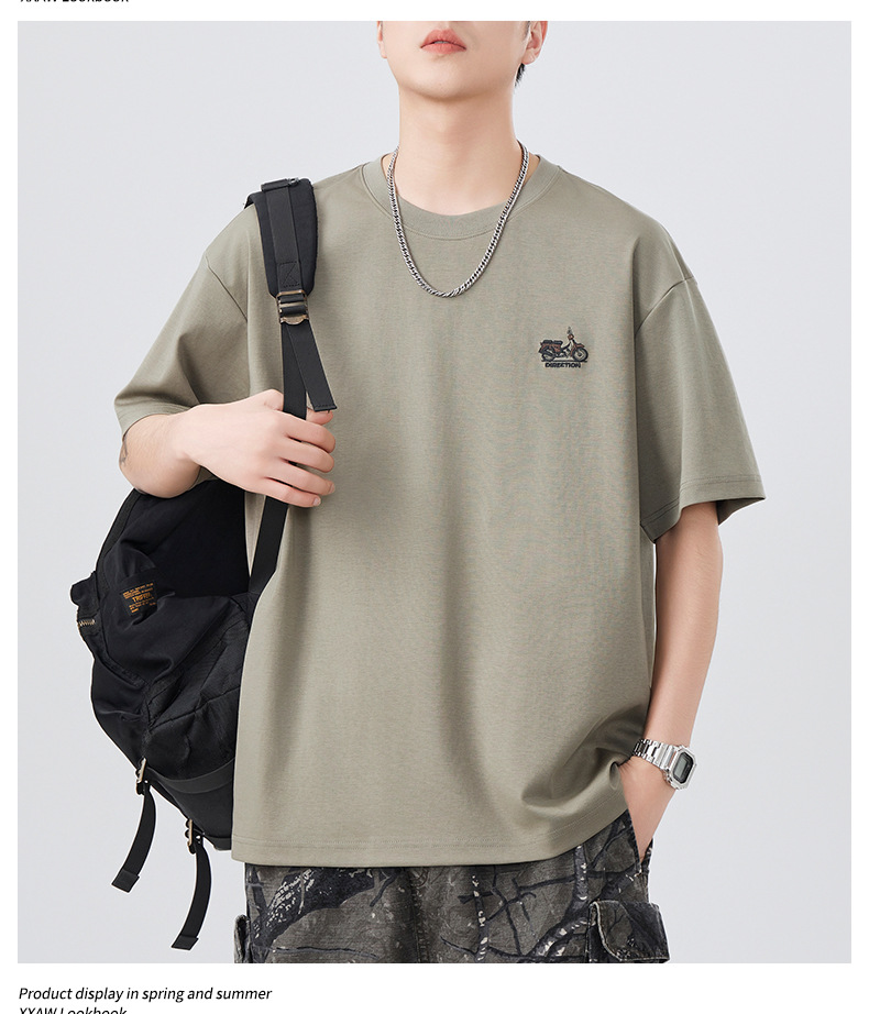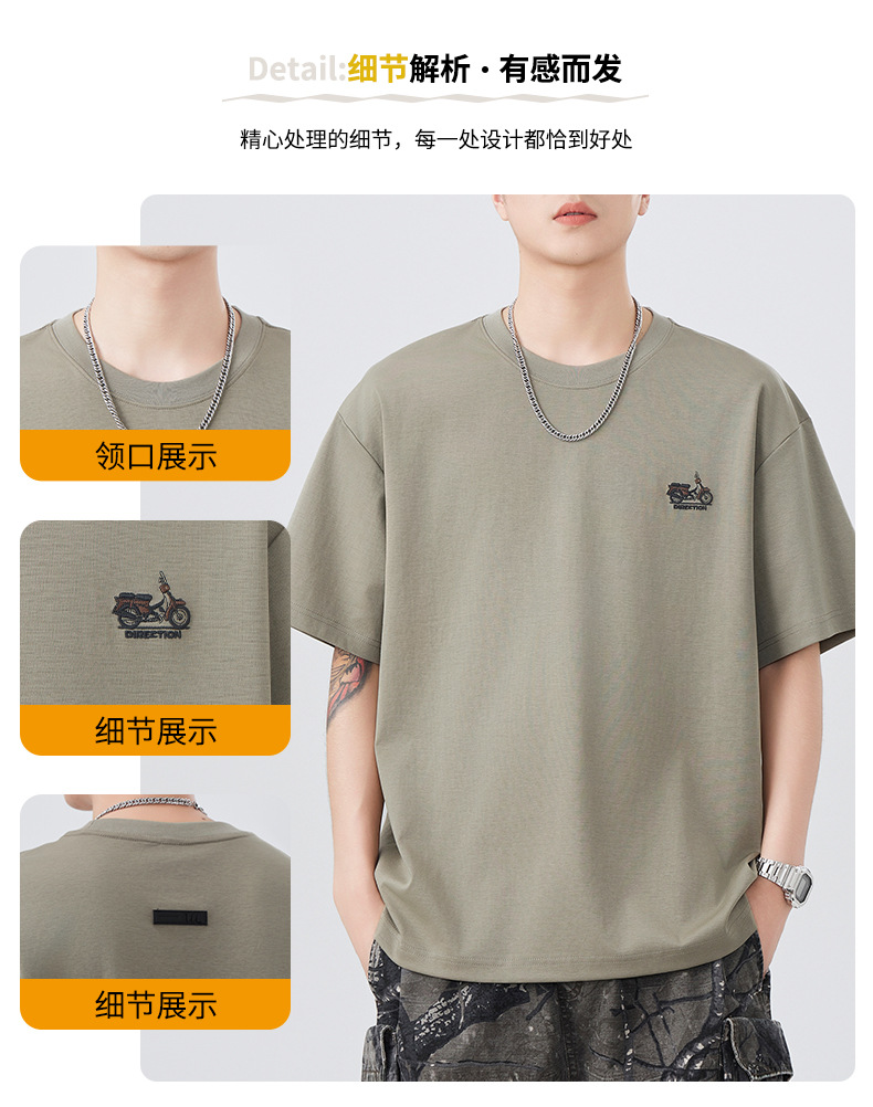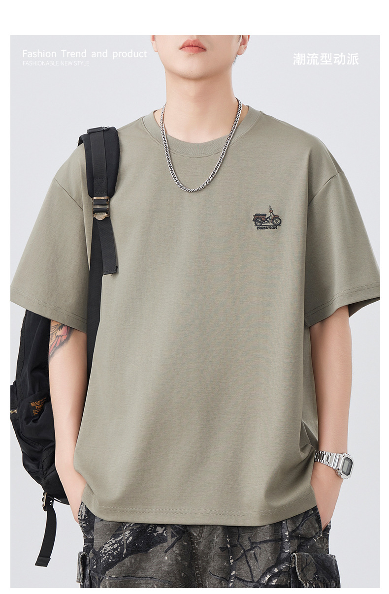 2025夏季新款短袖T恤男简约刺绣百搭五分袖体恤衫宽松潮流弹力上