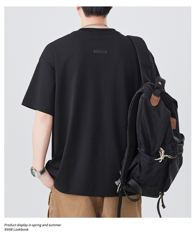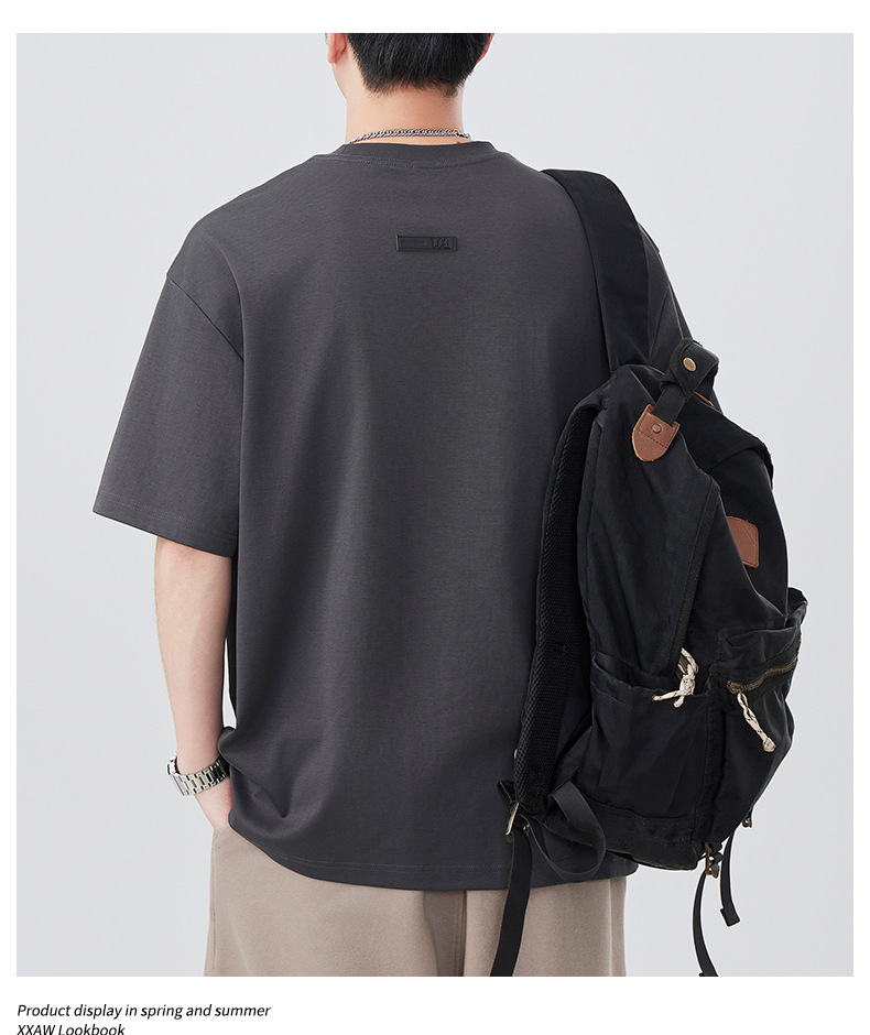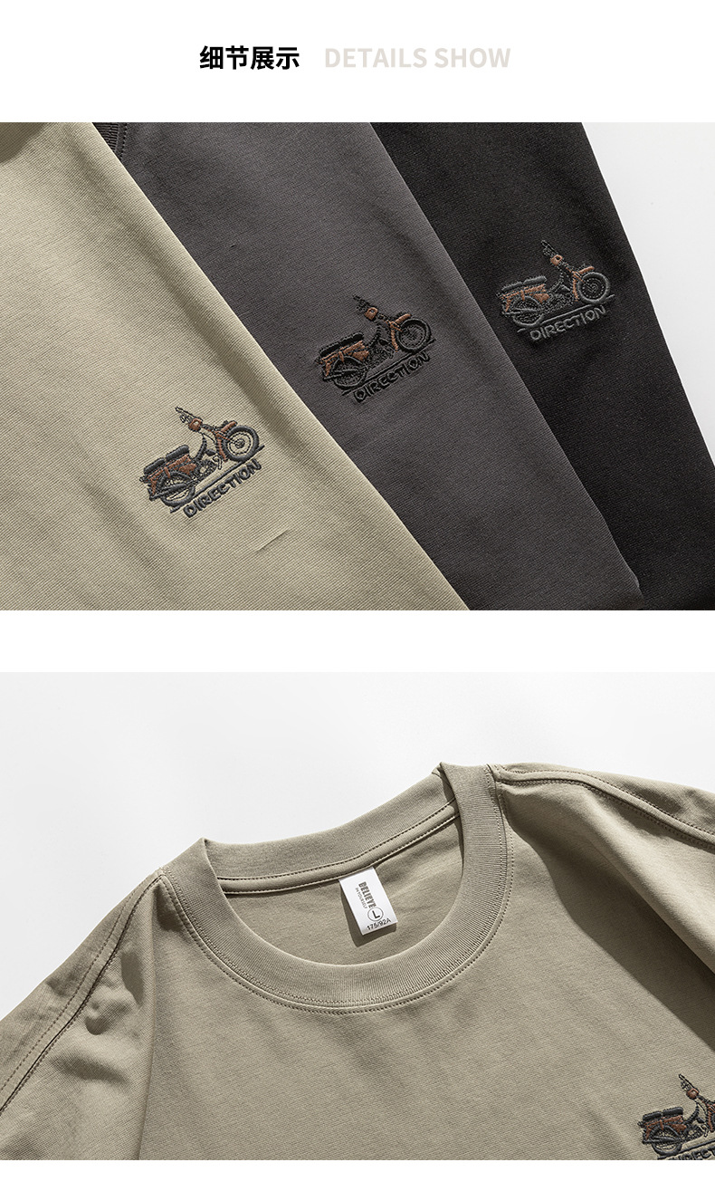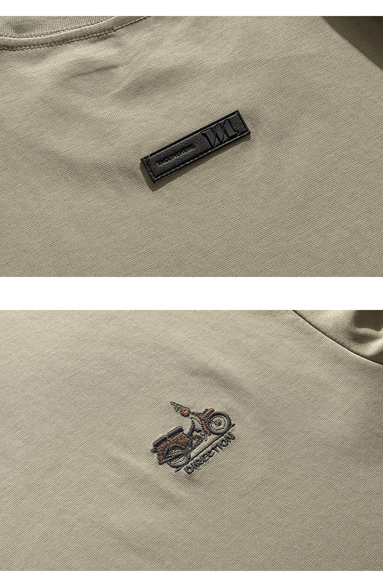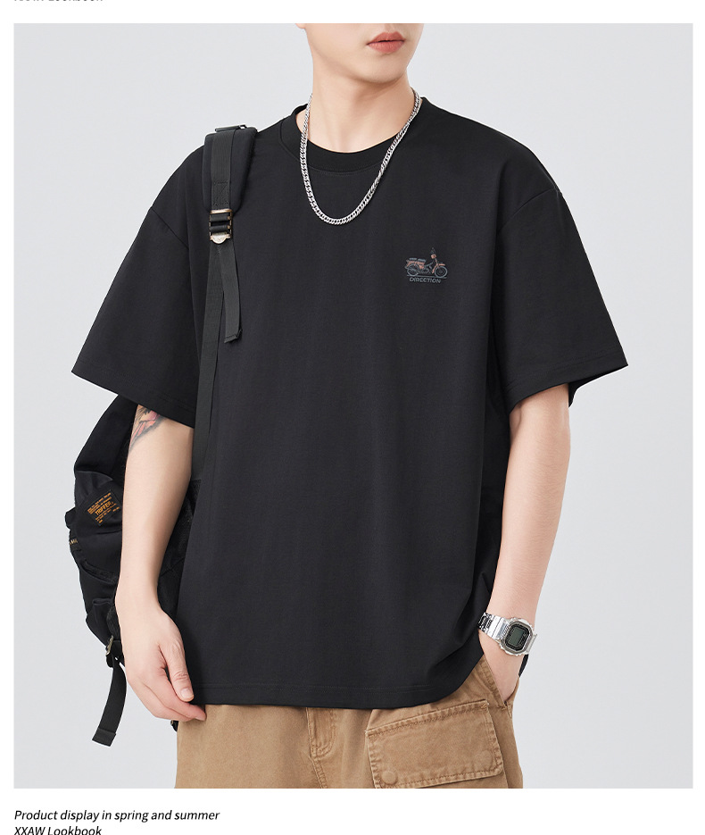2025夏季新款短袖T恤男简约刺绣百搭五分袖体恤衫宽松潮流弹力上