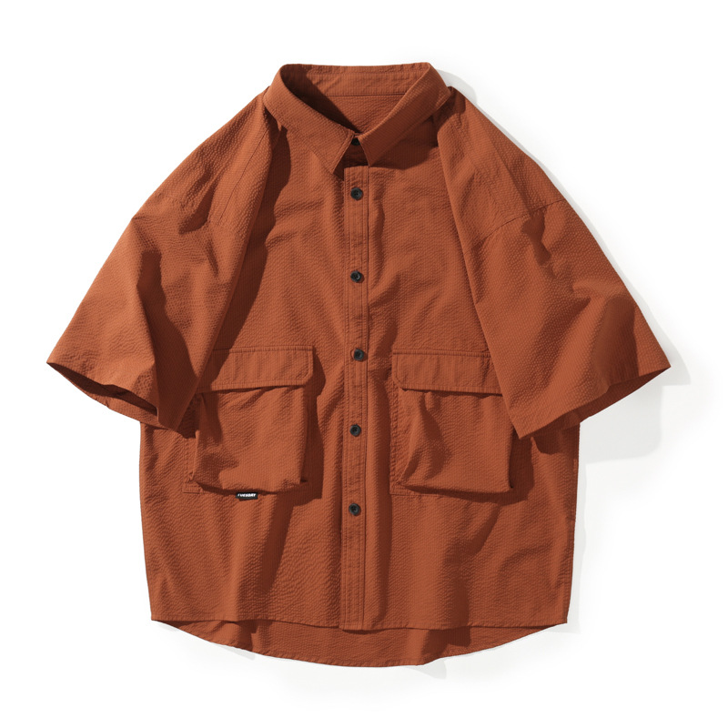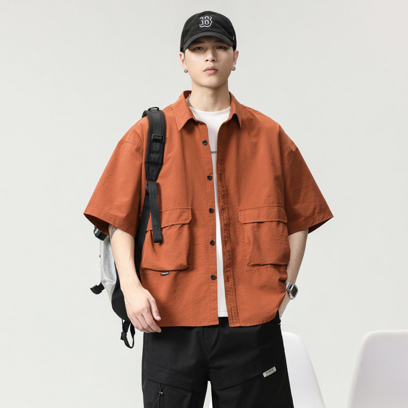 美式复古工装短袖衬衫男夏季潮牌高级感日系翻领衬衫