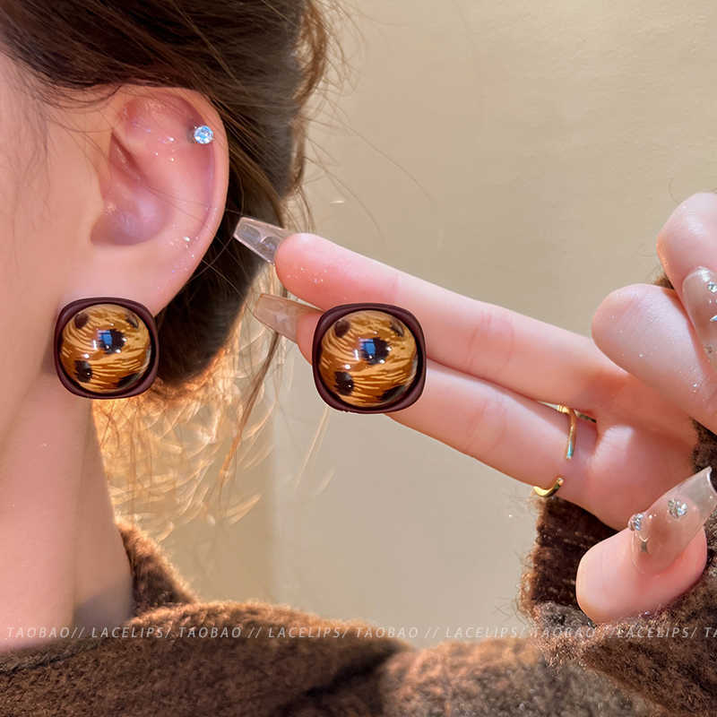 复古美拉德豹纹耳钉女新款爆款秋冬高级感耳环气质轻奢耳饰品