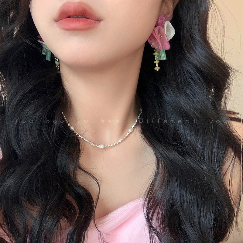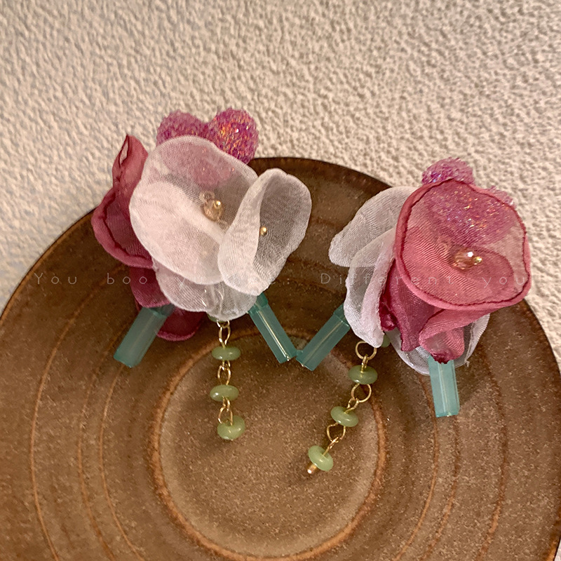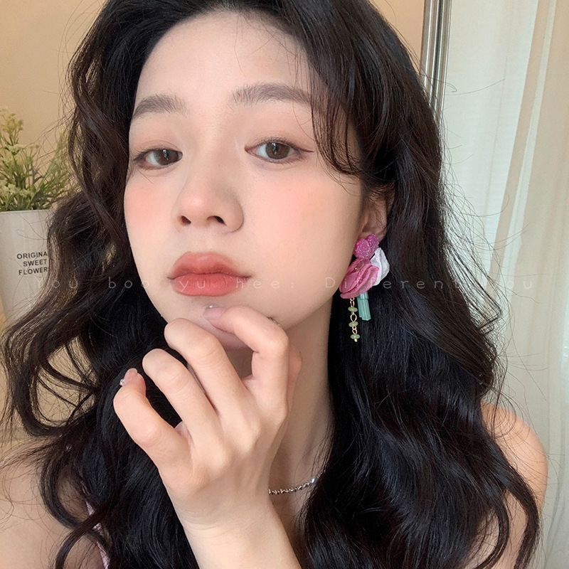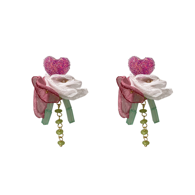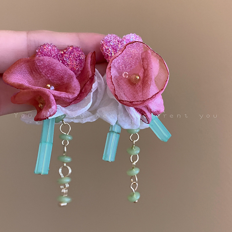 彩色海边度假耳环夸张粉色花朵流苏耳钉小众设计感独特高级感耳饰