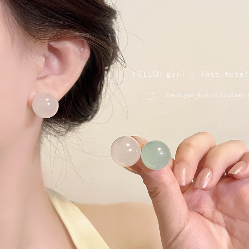 春日~彩色亚克力圆珠耳钉年新款爆款耳环女甜美小巧简约耳饰