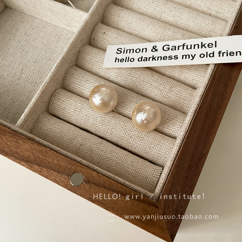 棉花珍珠耳钉女秋冬复古独特耳环新款爆款轻奢高级感气质耳饰