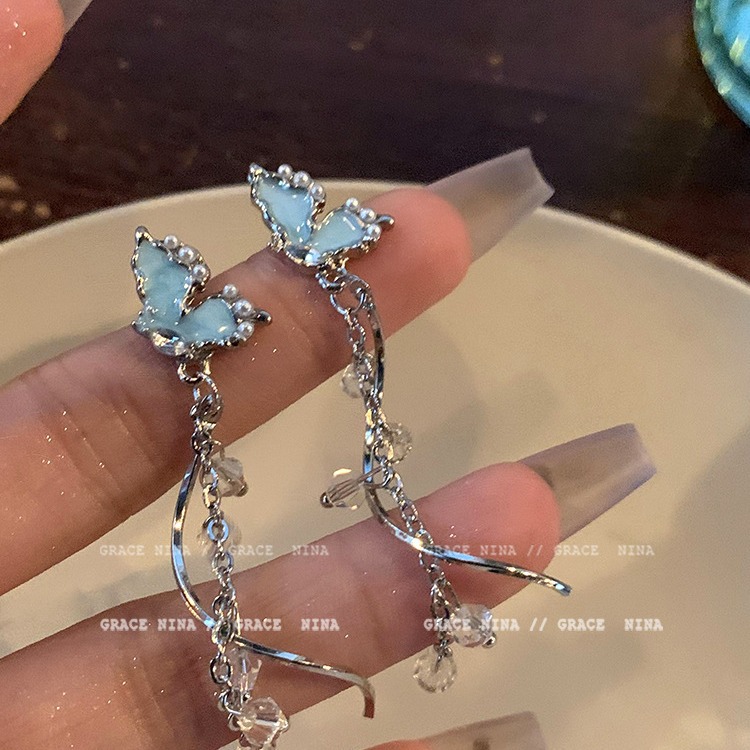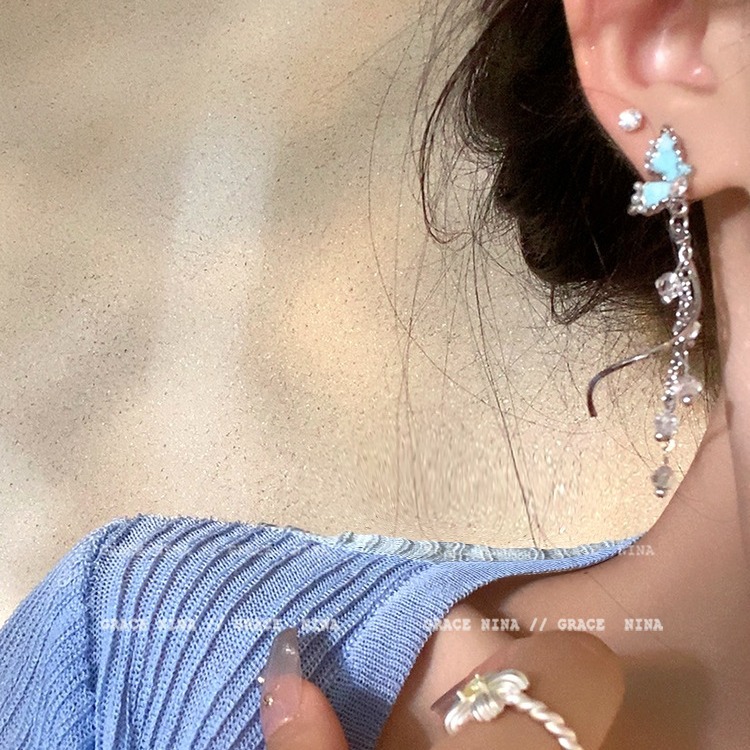 美出圈!气质蝴蝶流苏耳钉女小众独特耳环新款爆款高级感耳饰