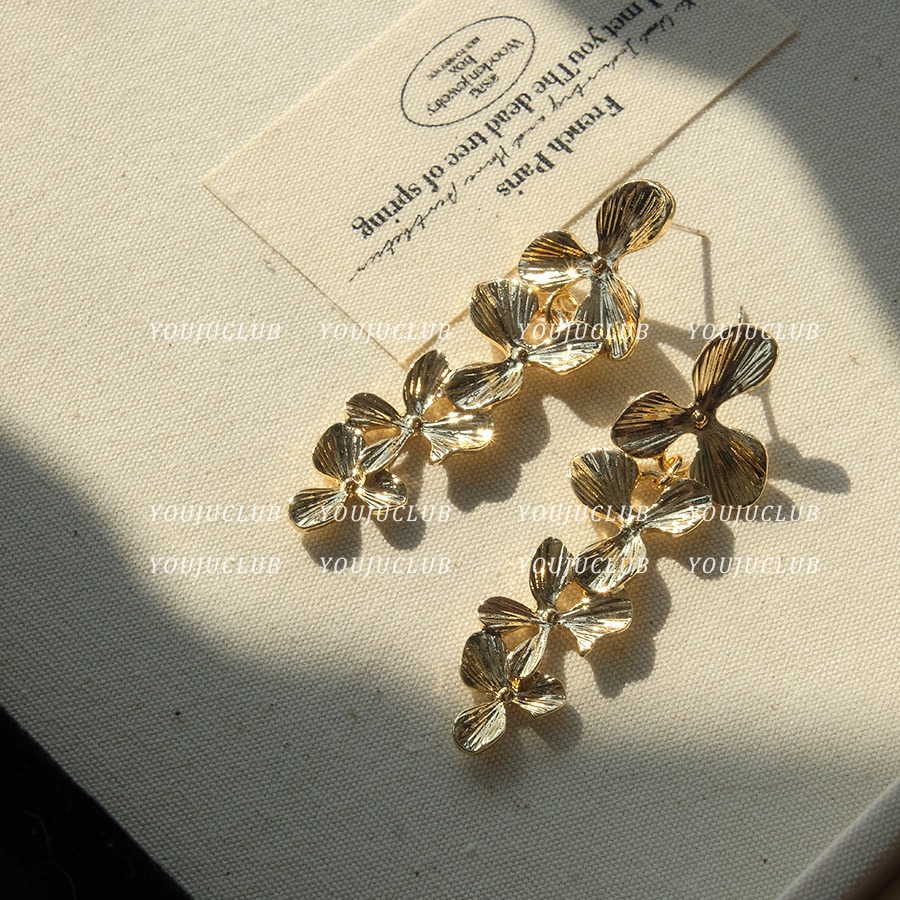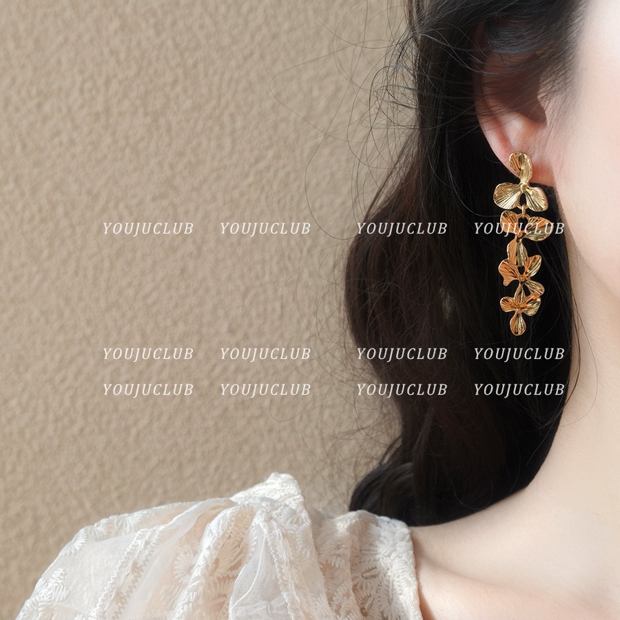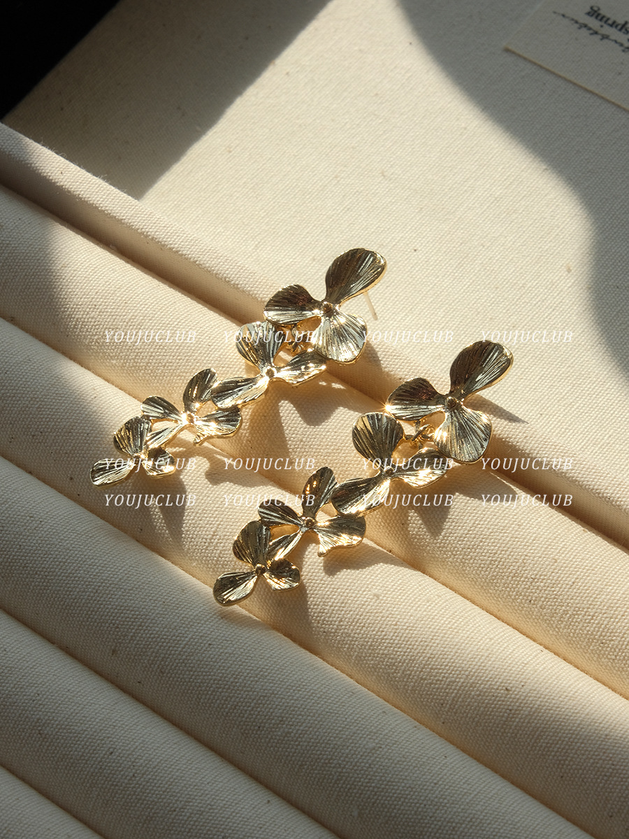法式浪漫金属花朵耳环女时尚气质夸张耳坠轻奢高级感耳饰独特耳钉