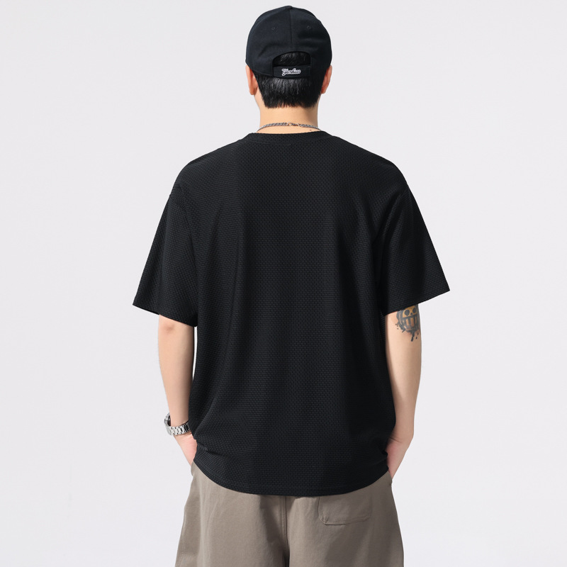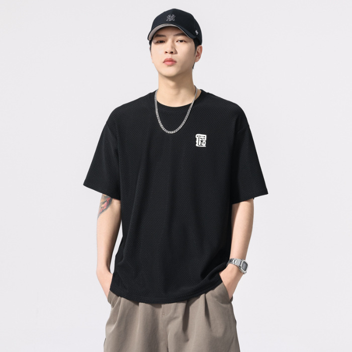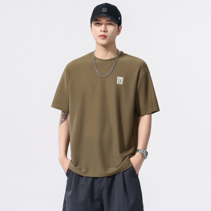 弹力冰丝凉感短袖t恤男士夏季2025新款美式休闲刺绣上衣半袖男款
