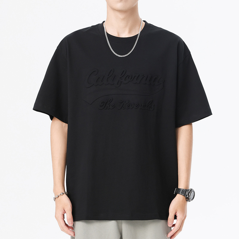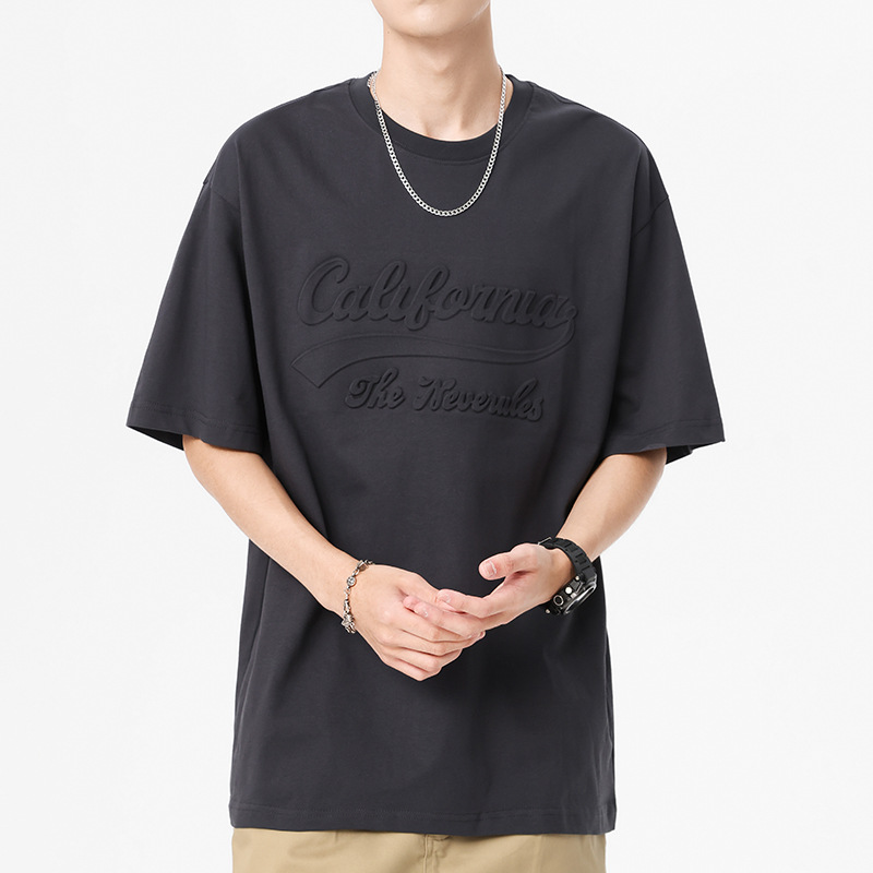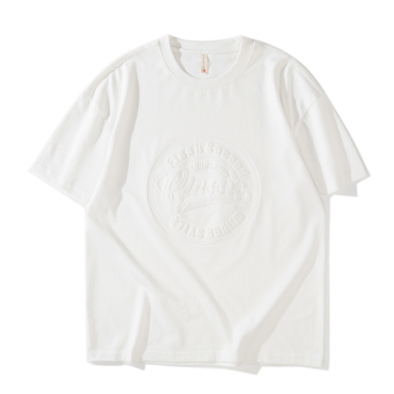 230g重磅钢印夏季短袖t恤男宽松大码美式潮牌ins白色圆领半袖体恤