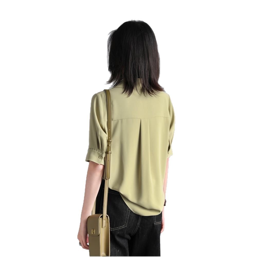新款别致漂亮小香风气质高级感法式掐腰绿色短款衬衫上衣女夏