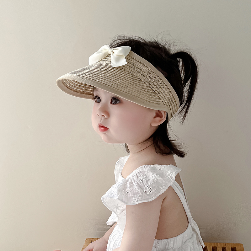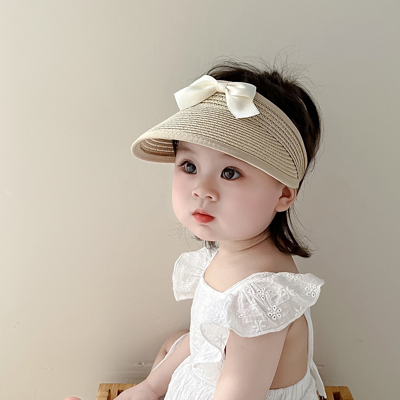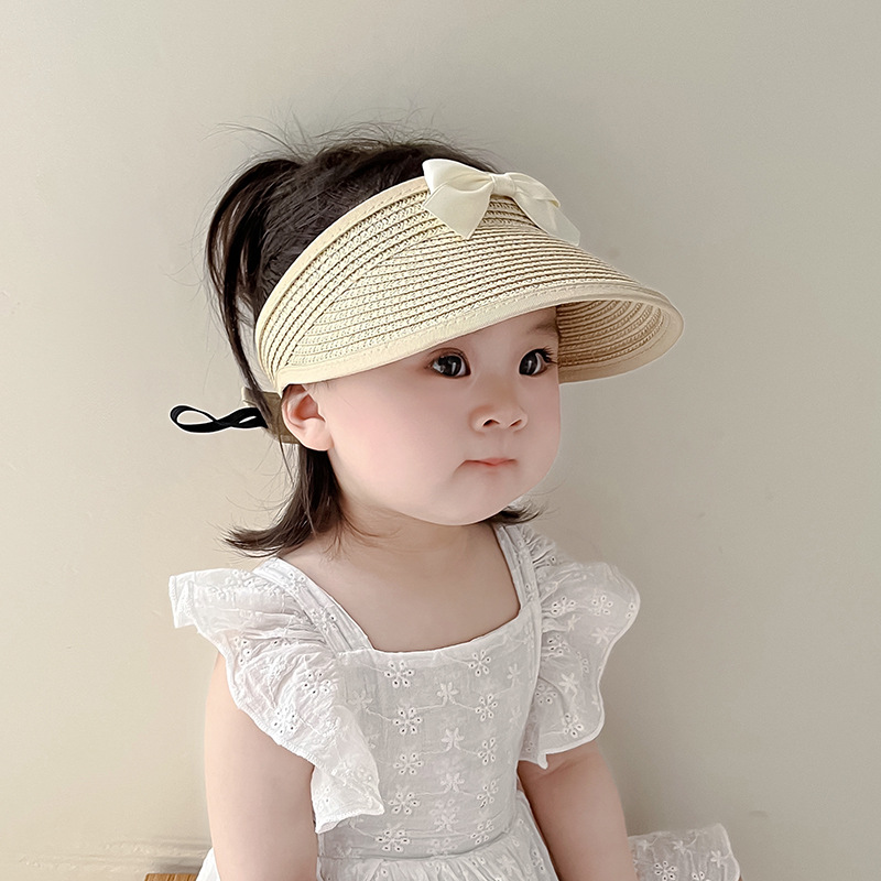 ins韩系女宝宝帽子夏季薄款遮阳防晒蝴蝶结空顶帽女童大檐太阳帽