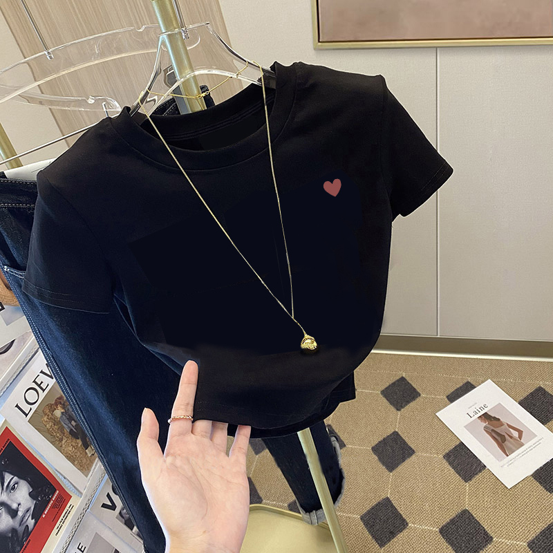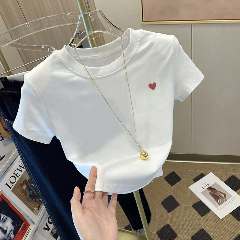2025春夏季新款纯棉粉色短袖t恤女修身显瘦爱心印花减龄圆领上衣