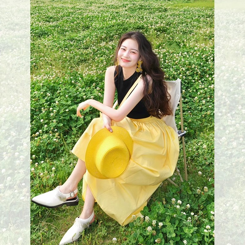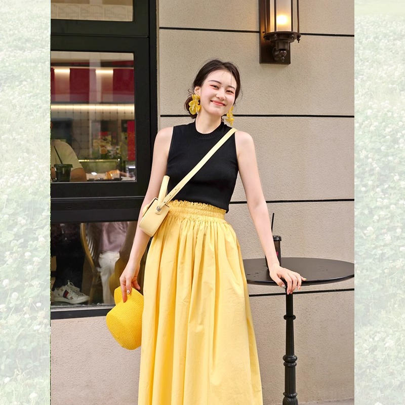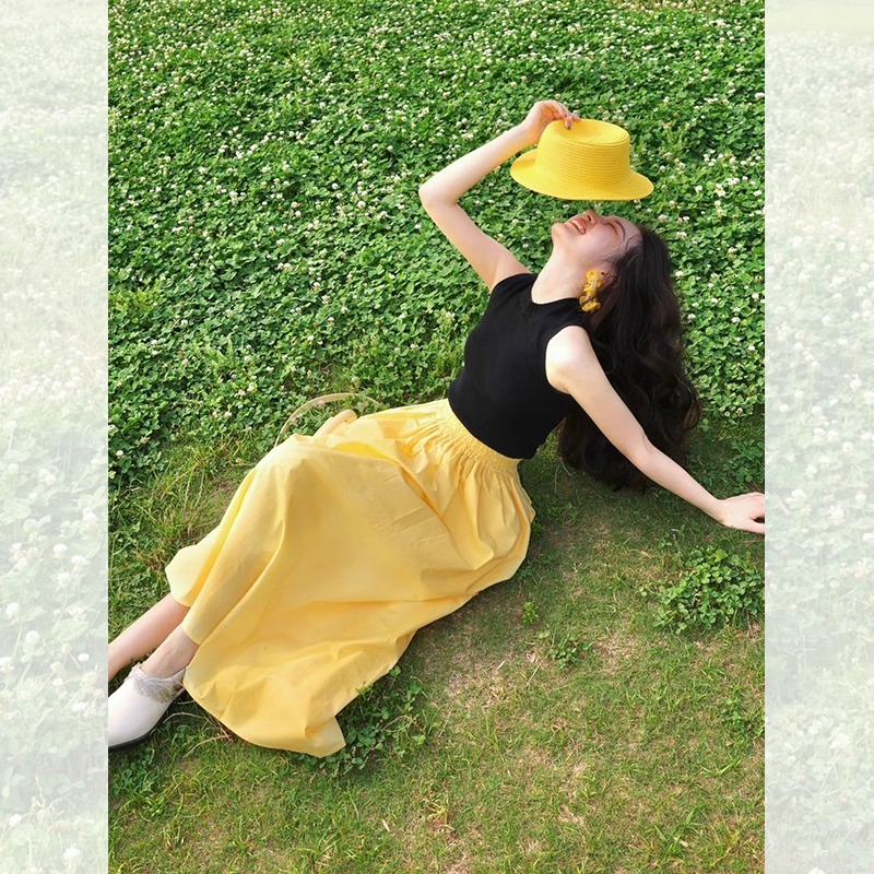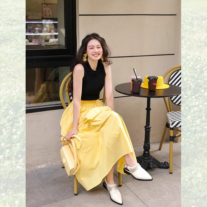 2025夏季新款茶里茶气多巴胺穿搭港风高级感背心半身裙两件套装女