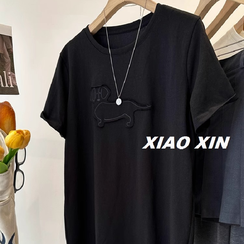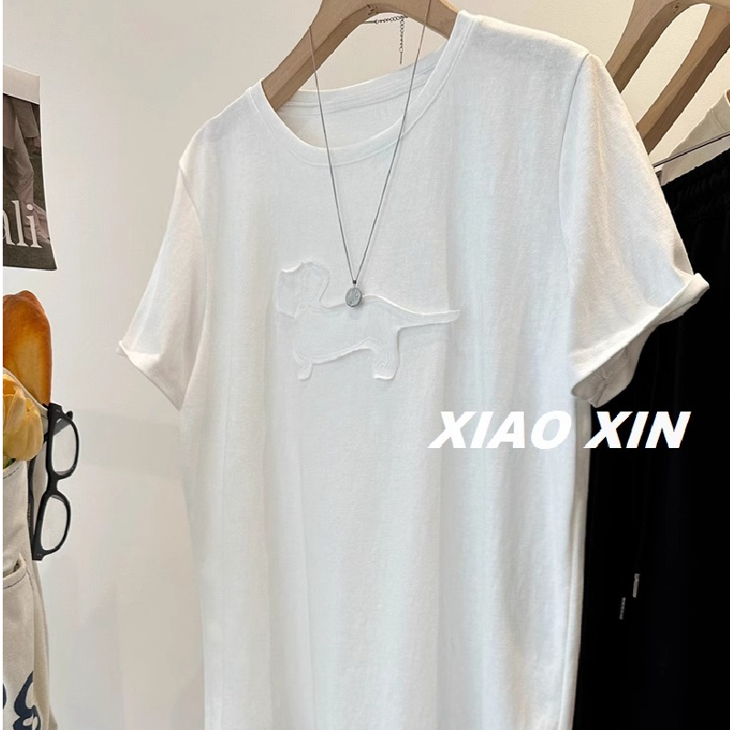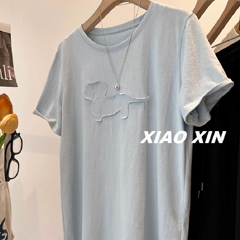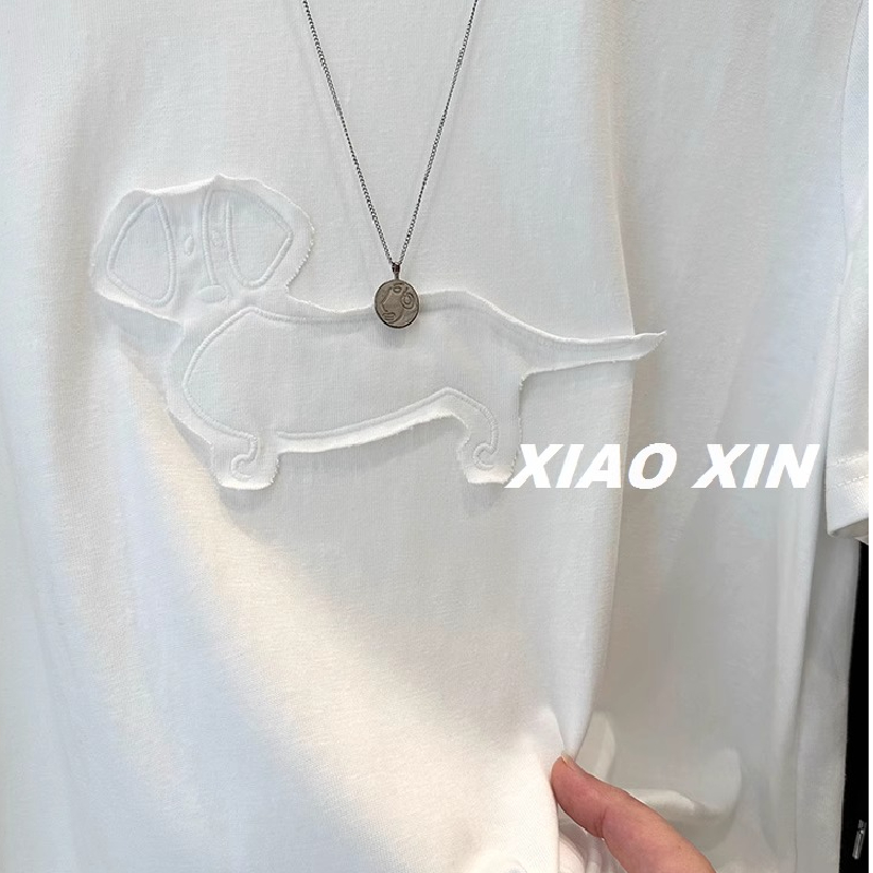 新款高级感刺绣贴布小狗短袖T恤女夏季宽松显瘦百搭慵懒风上衣潮