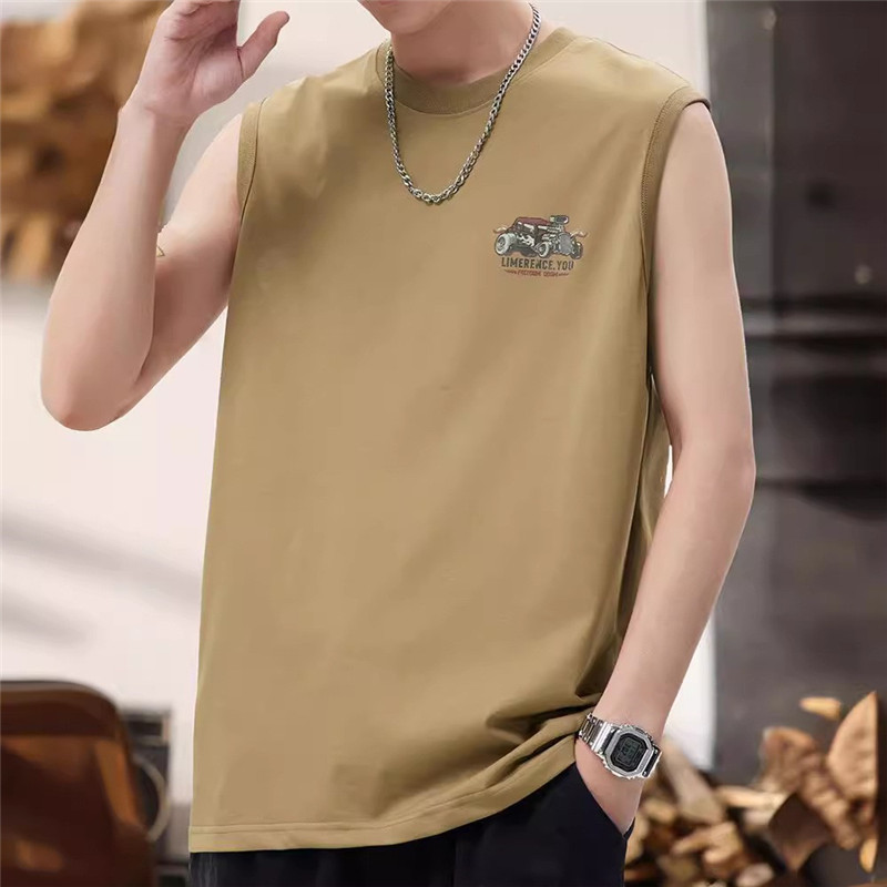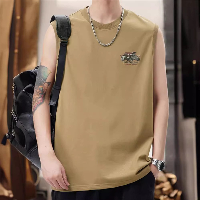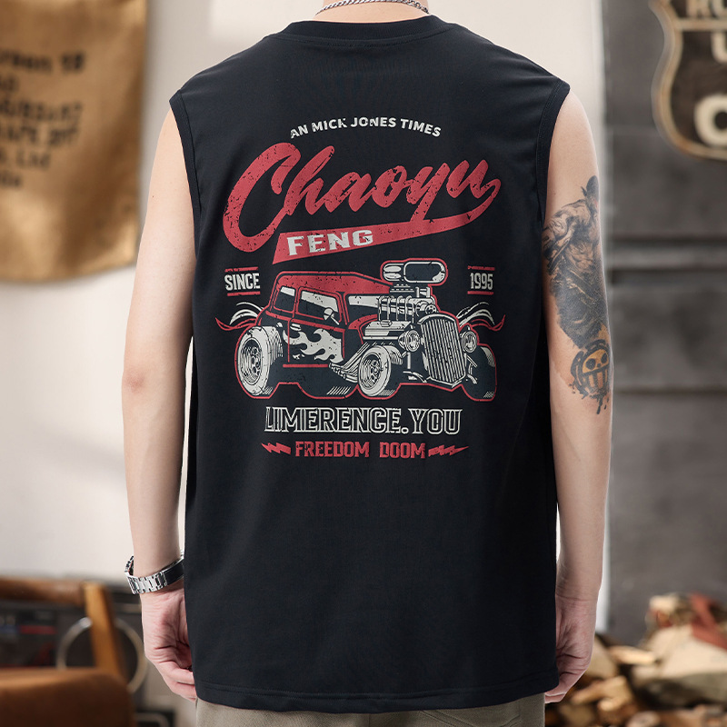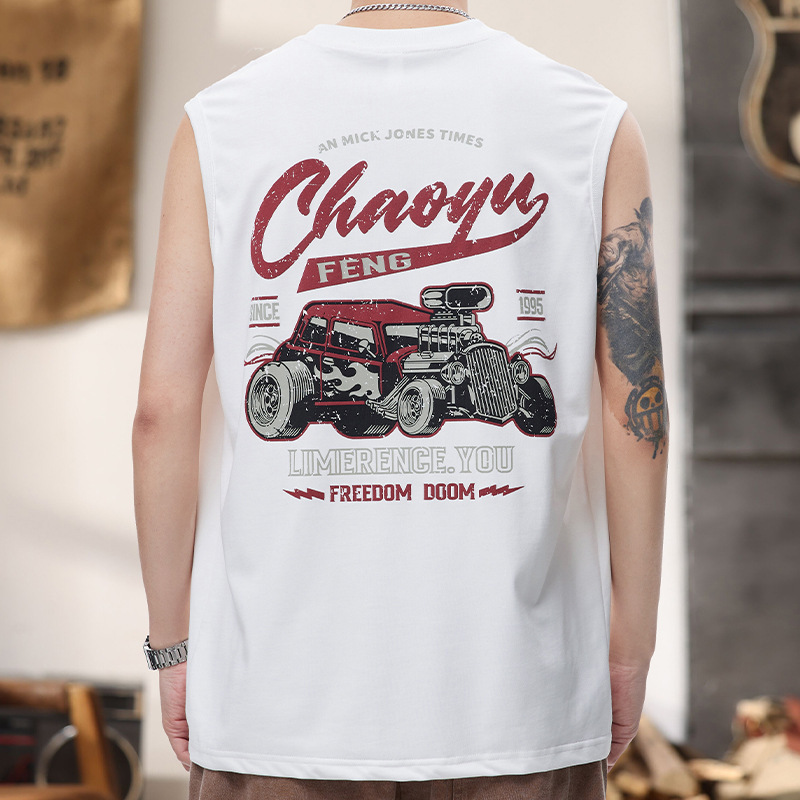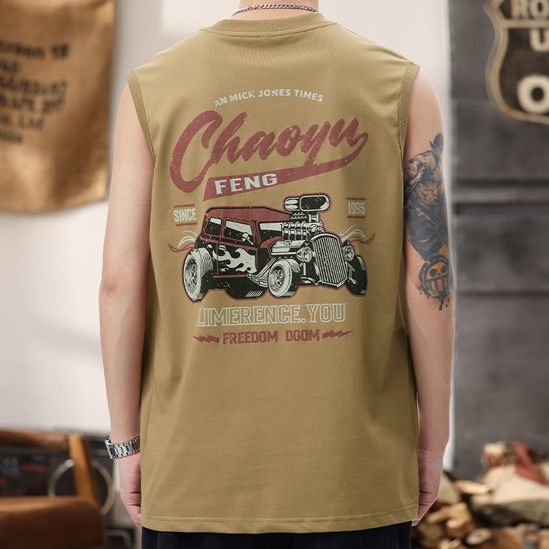 美式街头重磅无袖背心男痞帅印花圆领篮球运动坎肩夏季无袖T恤潮