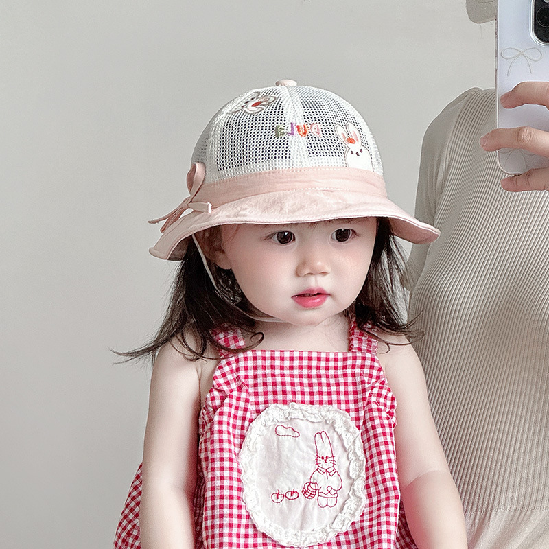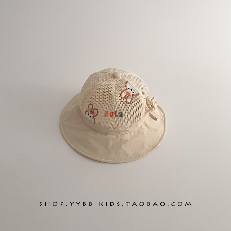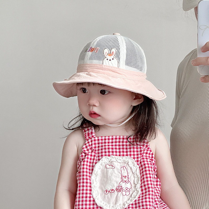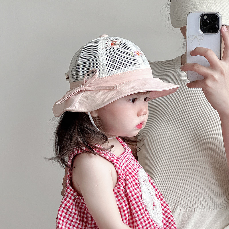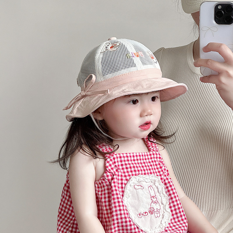 宝宝帽子夏季薄款透气网眼可调节渔夫帽女童遮阳防晒可爱超萌盆帽