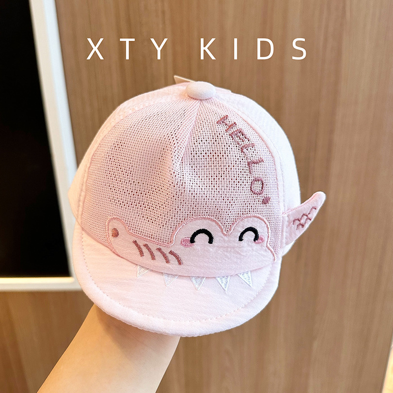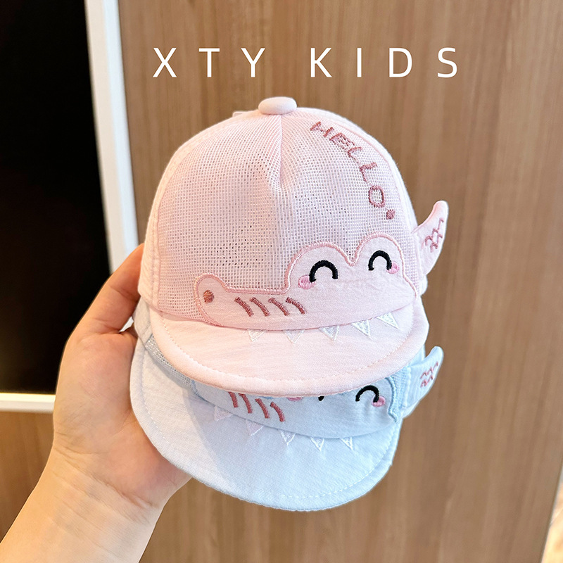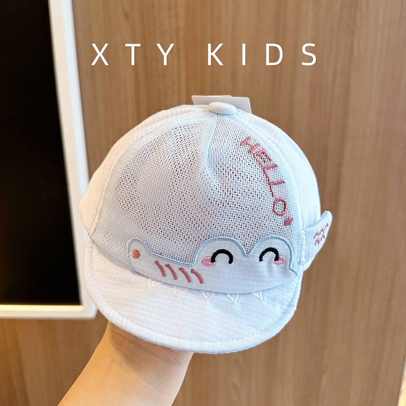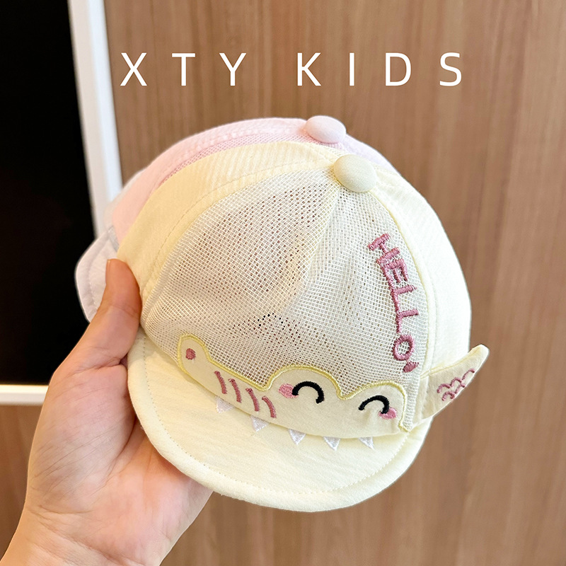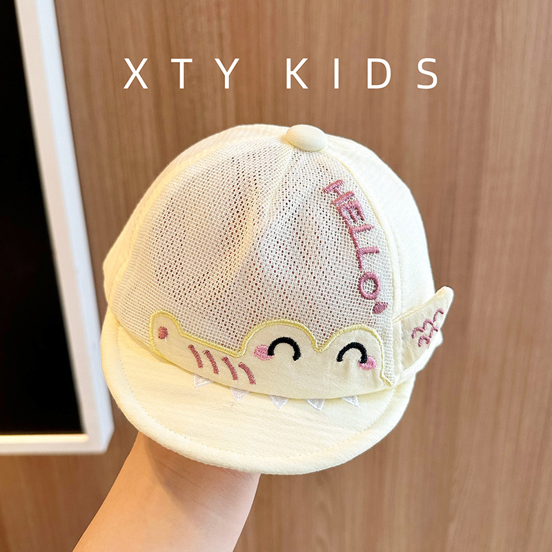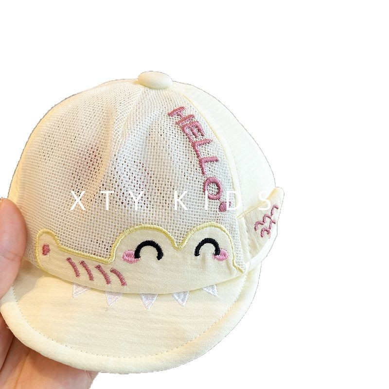 韩版婴幼儿帽子夏季薄款网纱0-3个月新生宝宝遮阳帽卡通可爱胎帽