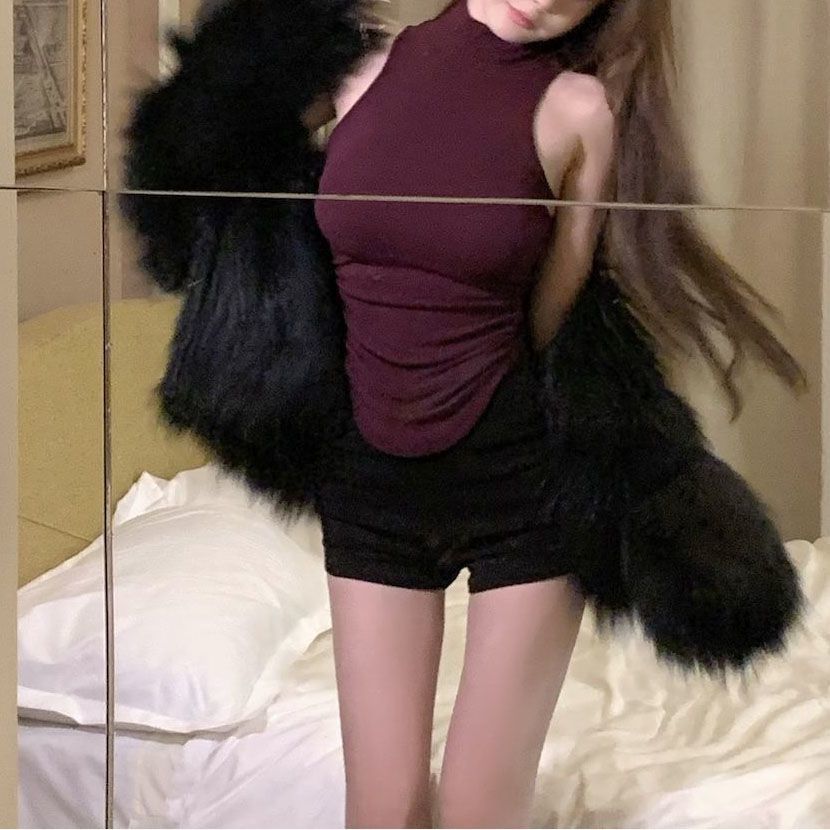 【跨境批发】辣妹修身半高领背心女夏季紫色紧身内搭无袖上衣外穿