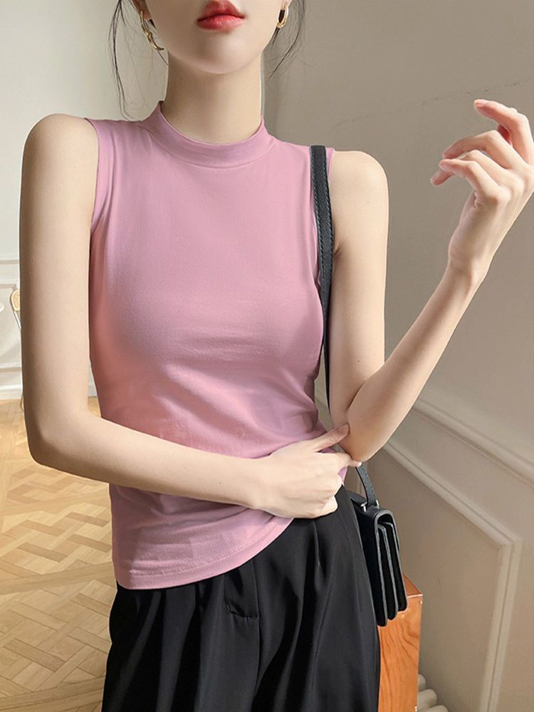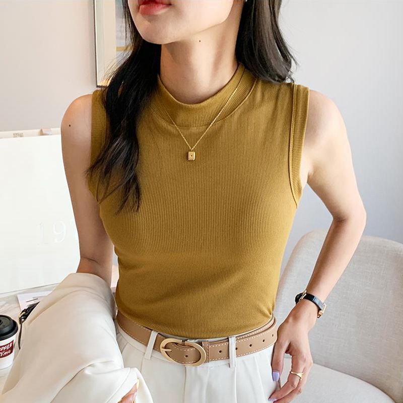 【跨境批发】半高领背心2025夏季新款纯色外穿修身内搭无袖上衣