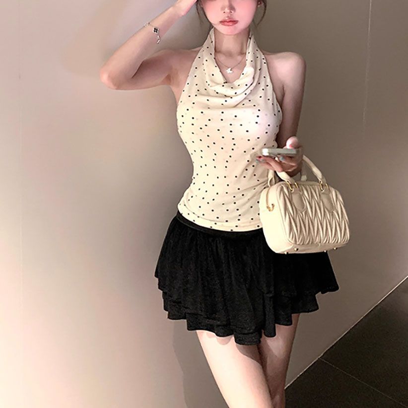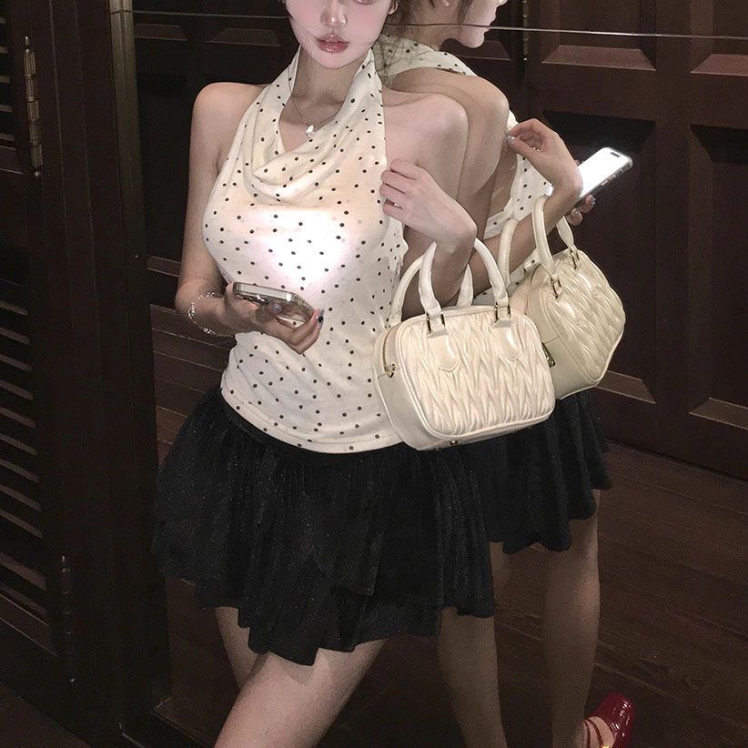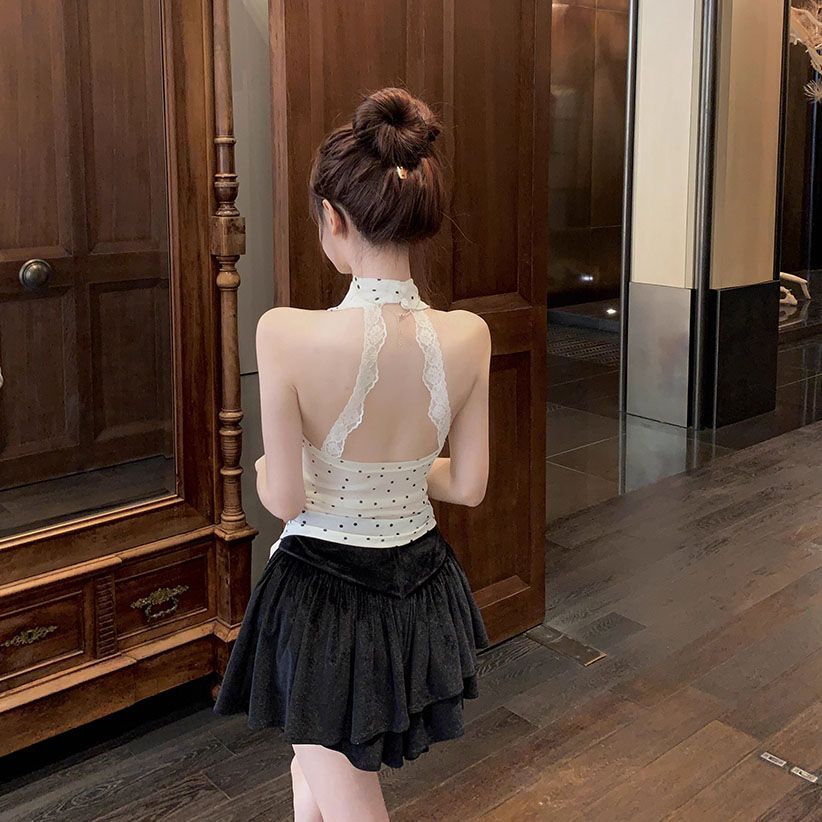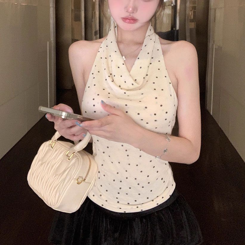 拼接荡领挂脖背心女夏季修身内搭甜辣妹无袖外穿上衣