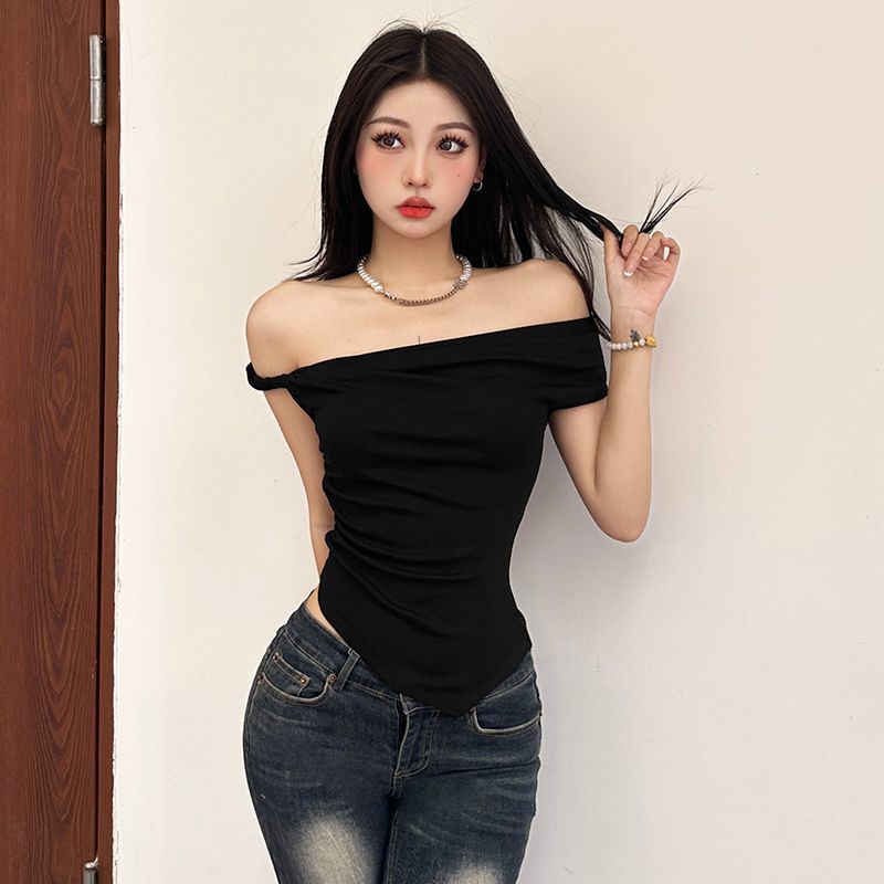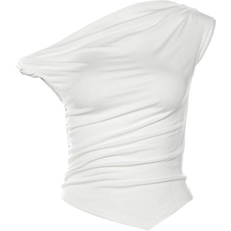 纯欲风斜领露肩背心女设计感不规则修身显瘦别致上衣
